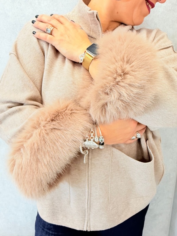 On aime : le contraste chic entre la matière douce et les finitions fourrure, parfait pour un look élégant et cocooning.
