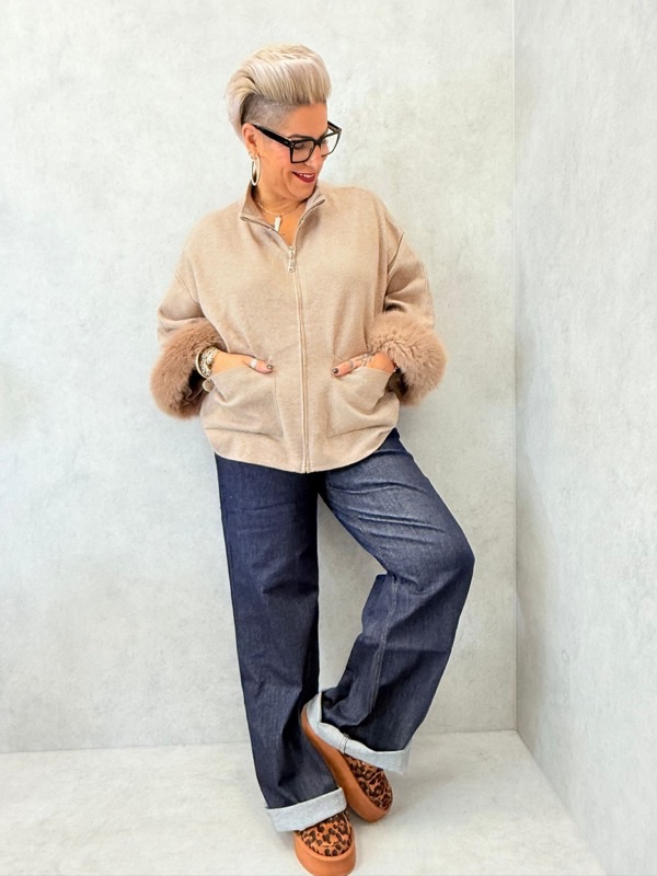 Une pièce élégante et confortable pour affronter la saison avec style. Cette veste zippée séduit par sa coupe ample et moderne, ses grandes poches plaquées et ses manches agrémentées d’un revers en fausse fourrure ultra douce.