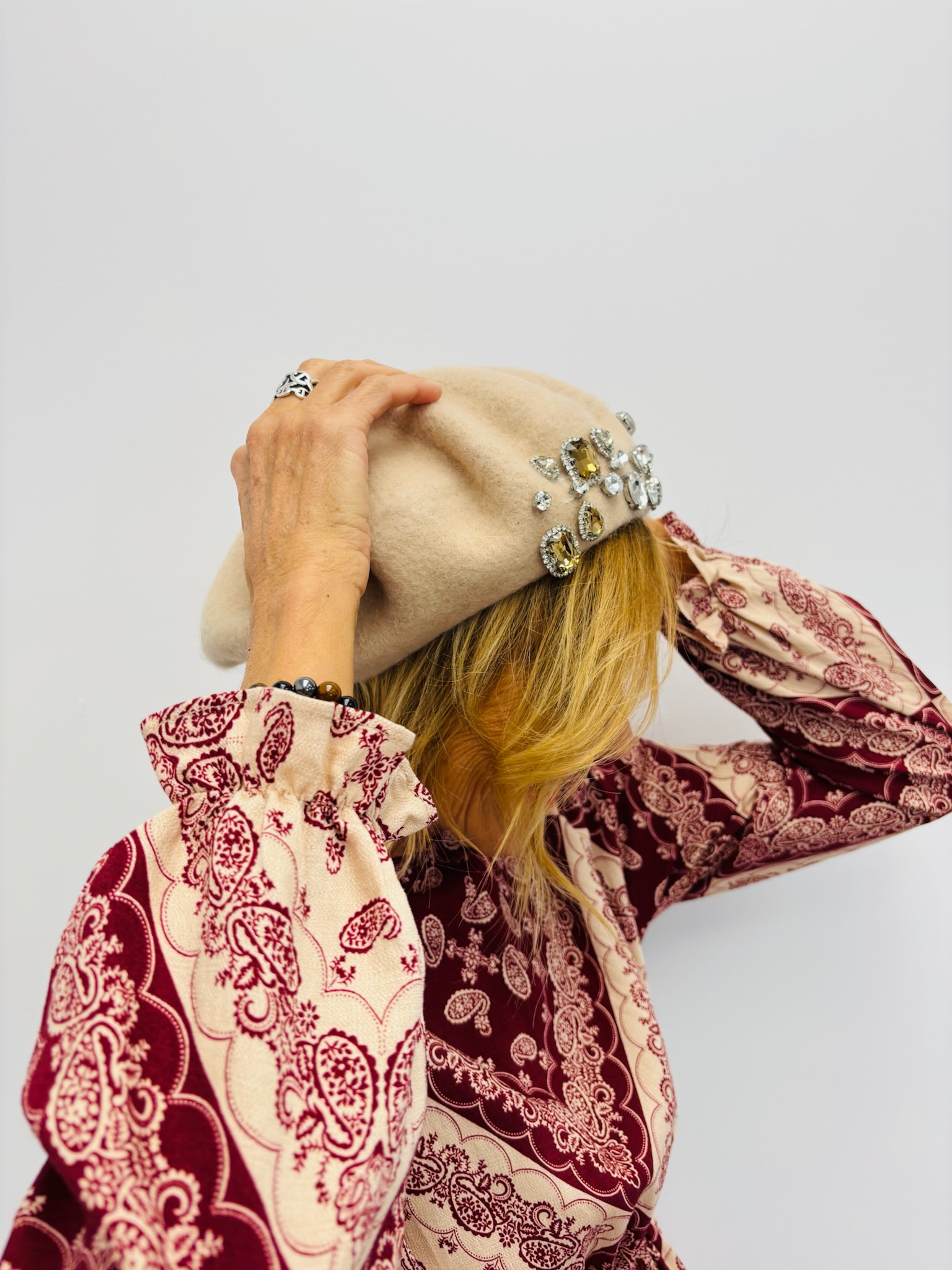 À porter avec un manteau long, un pull en mohair ou une robe fluide pour une allure parisienne chic. Le détail bijou illumine le visage et ajoute une touche précieuse à vos looks d’hiver.