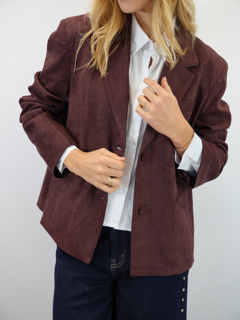 Une veste polyvalente qui se porte aussi bien en total look coordonné qu’avec un jean pour un style casual chic.