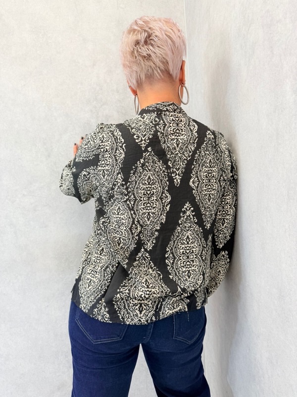 Blouse grande taille imprimé cachemire noir & écru