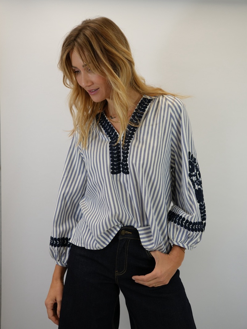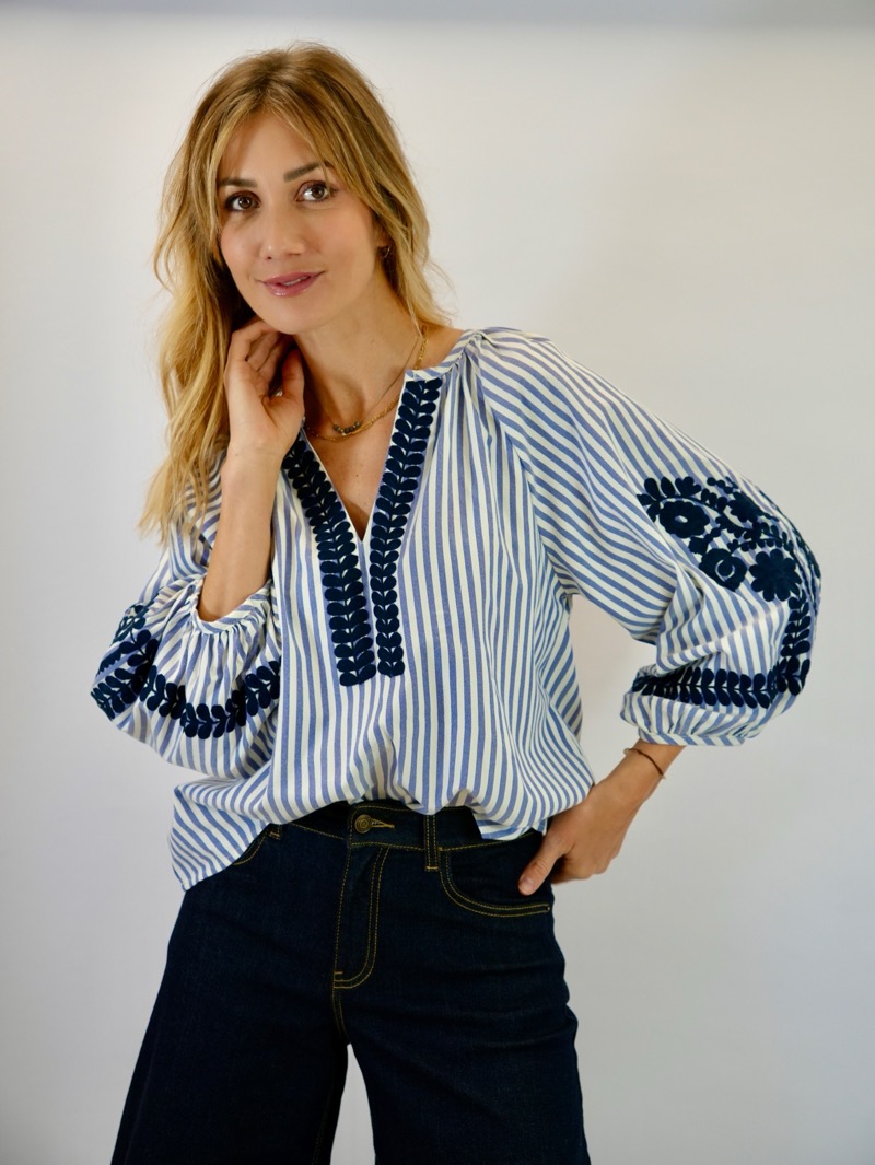 Blouse Rayée Brodée – Élégance Artisanale & Style Bohème Chic