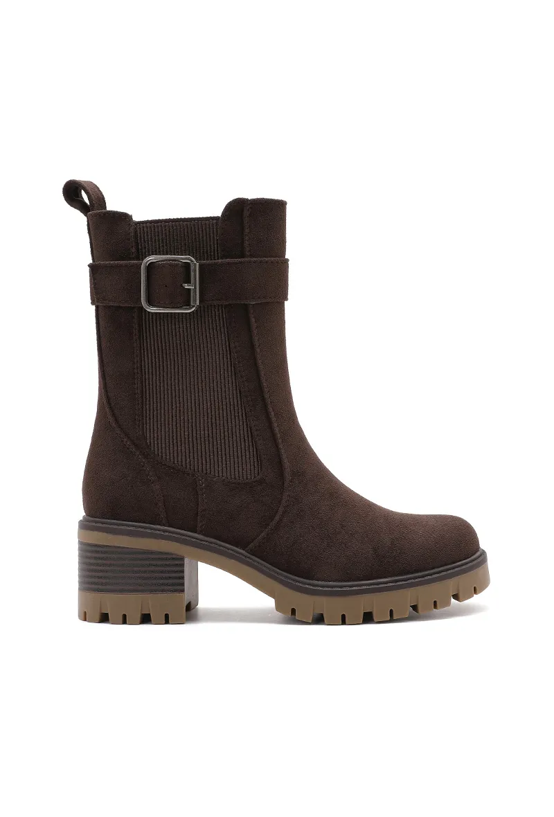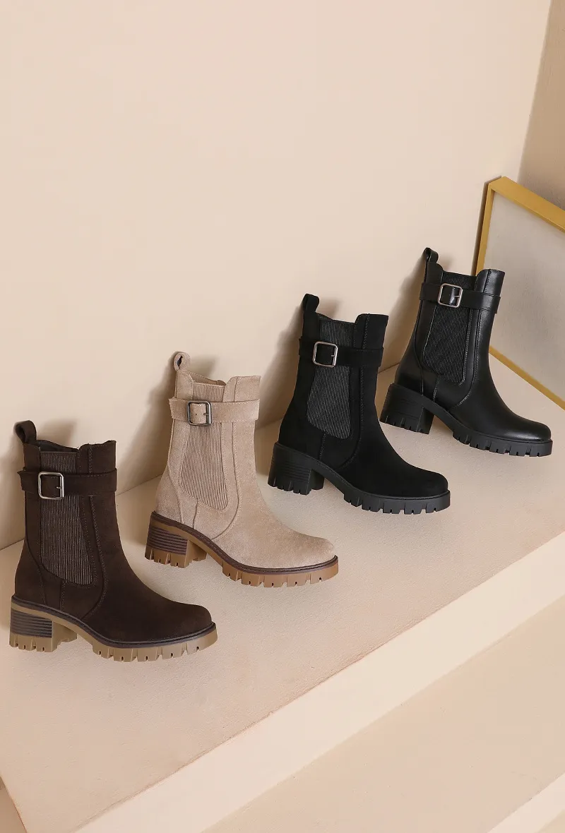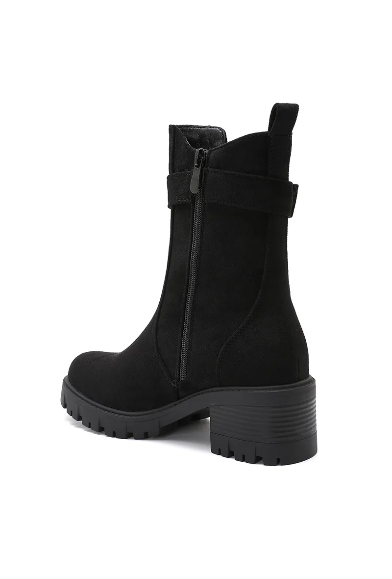 Bottines à talon bloc avec boucle et semelle crantée