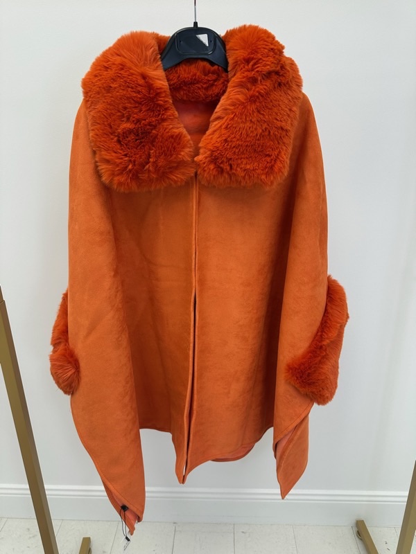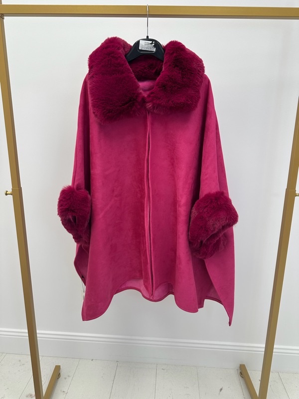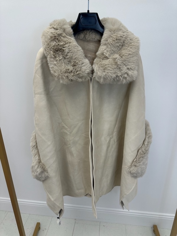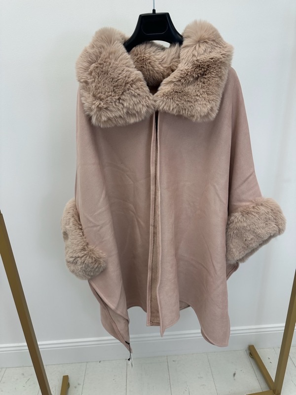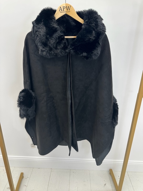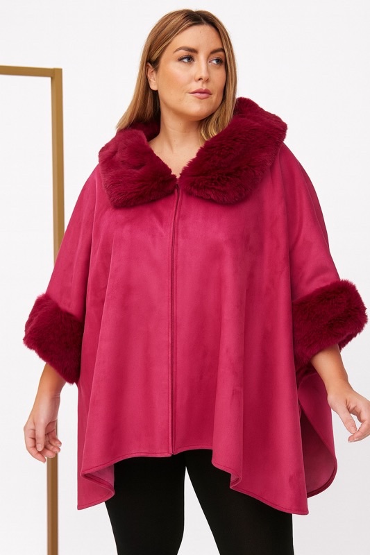 Cape suédine avec col et manches fausse fourrure – Grande Taille