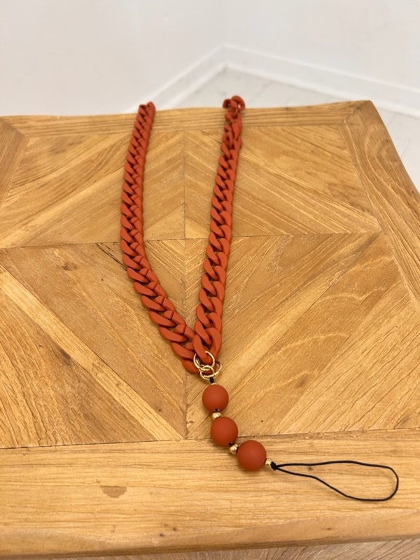 Pratique et tendance, cette chaîne de téléphone permet de garder votre smartphone à portée de main avec style. Réalisée en maillons souples et colorés, elle apporte une touche fun et moderne à vos accessoires.