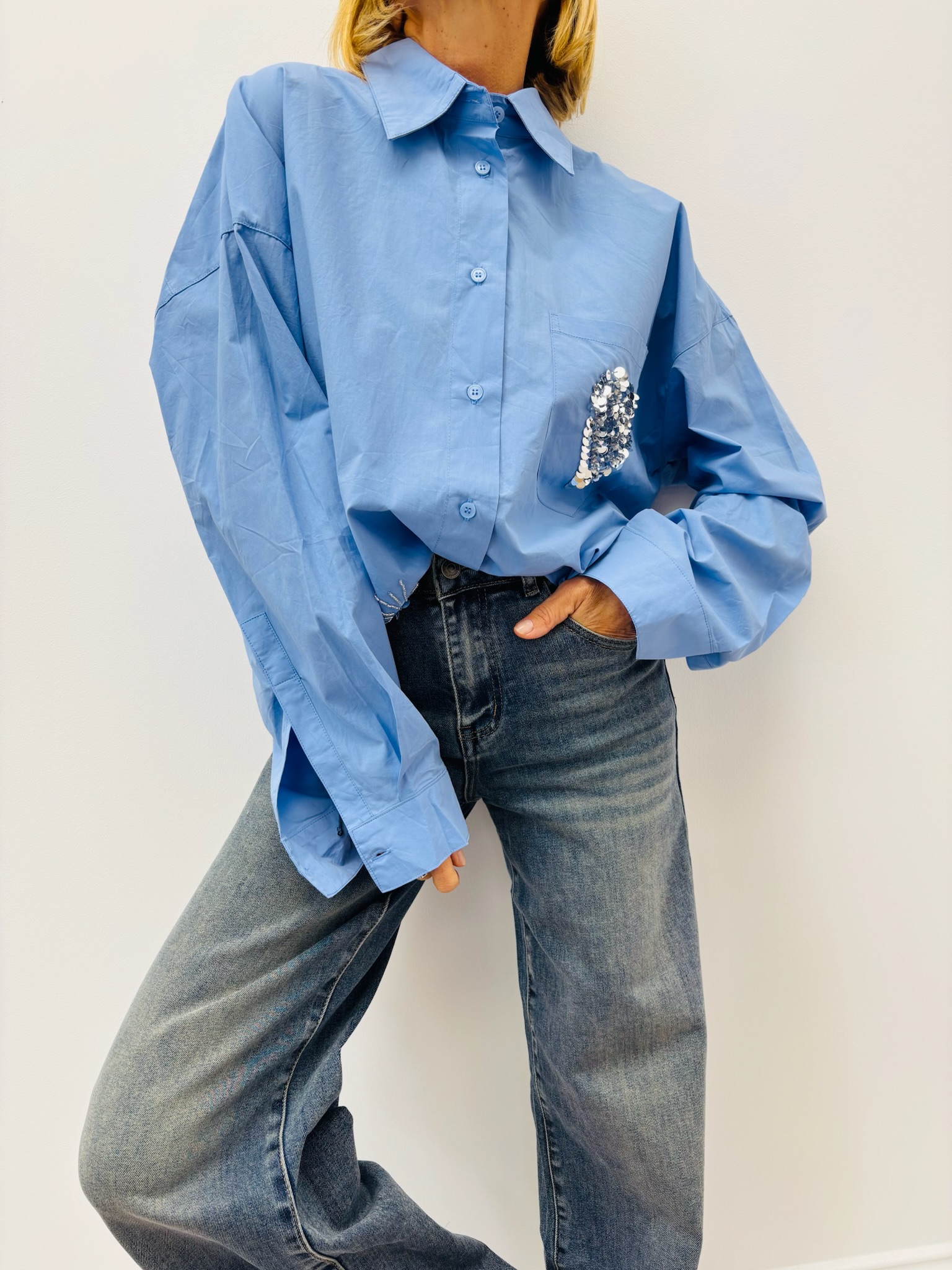 Chemise Coton Brodée sequins – 100 % coton