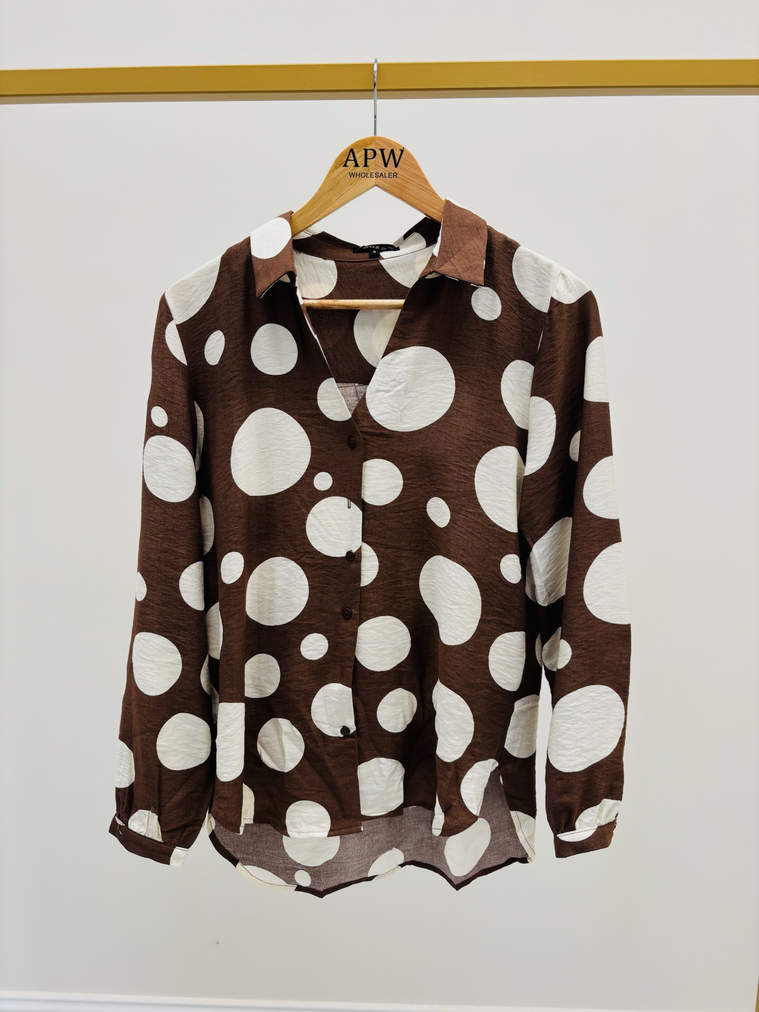 Un imprimé audacieux et une matière fluide pour une chemise au charme rétro revisité. Cette chemise à grands pois contrastés allie originalité et élégance, parfaite pour illuminer vos tenues du quotidien.