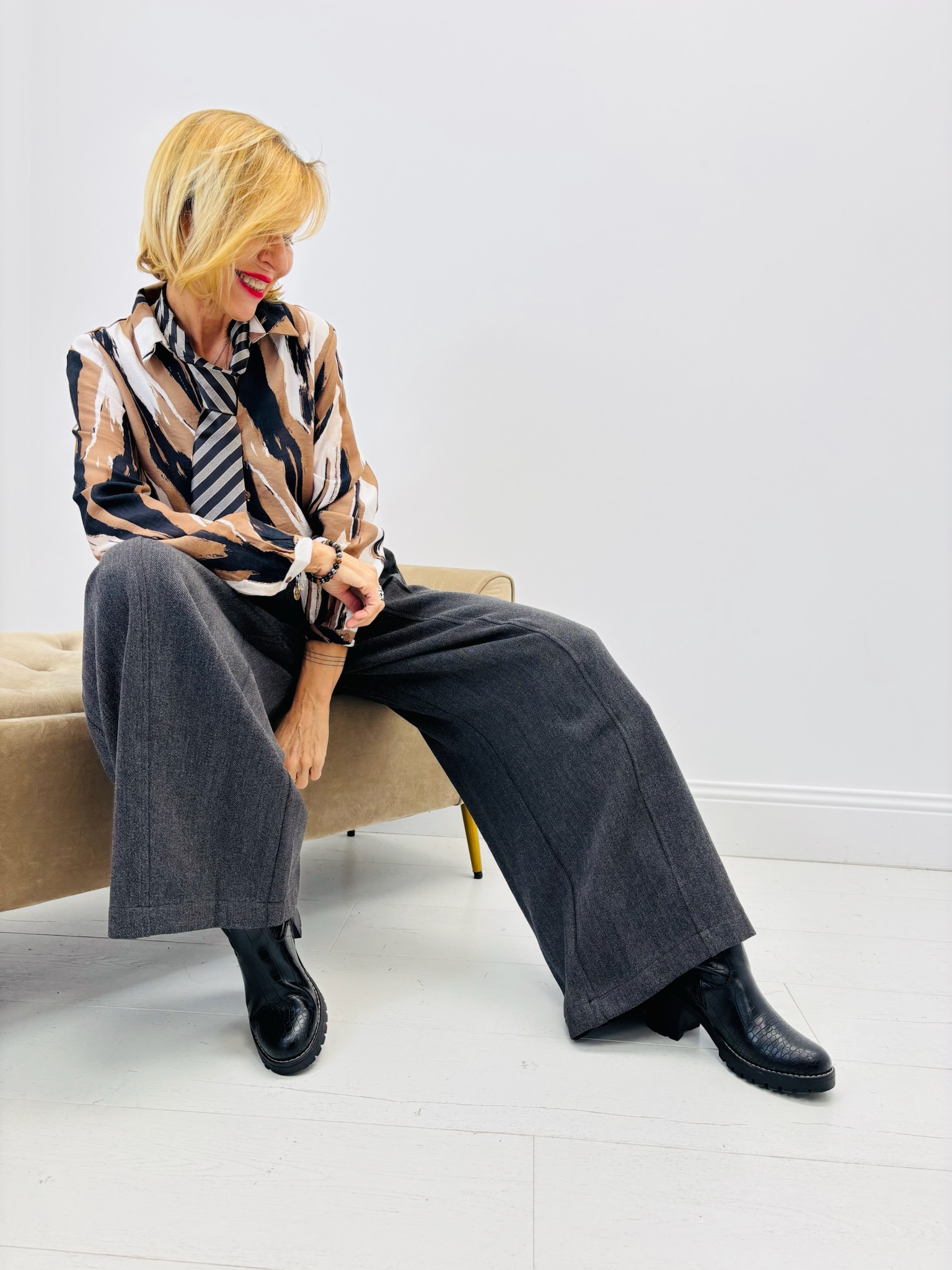 Une chemise fluide et graphique, idéale pour dynamiser les tenues du quotidien.