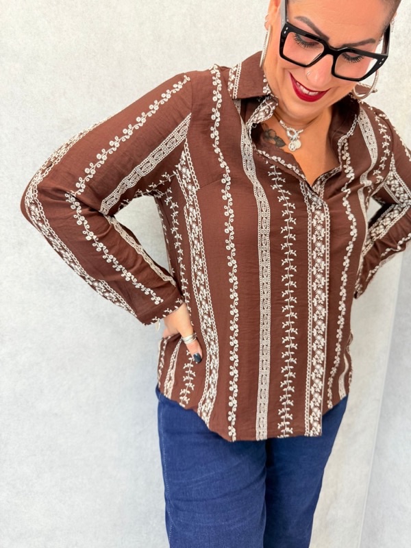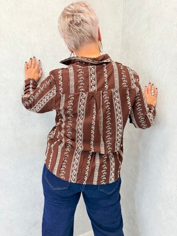Un basique revisité avec une touche d’originalité ! Cette chemise fluide à imprimé graphique ethnique est parfaite pour donner du style à vos tenues tout en restant confortable.