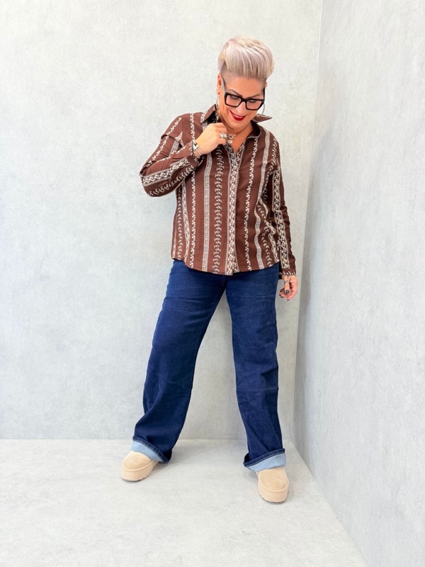 À associer avec un jean brut pour un look casual chic, ou avec un pantalon uni élégant pour une allure plus habillée. Parfaite pour le quotidien comme pour le bureau.