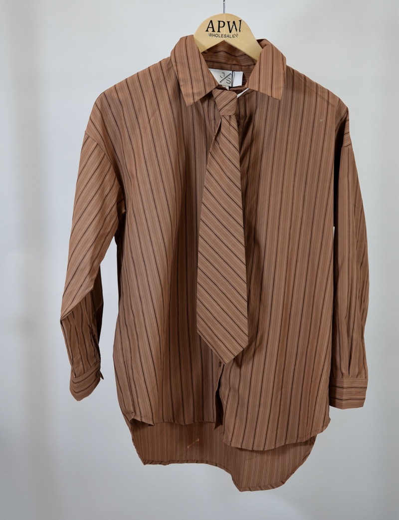 Chemise Rayée avec Cravate Intégrée – Élégance Mode & Esprit Couture