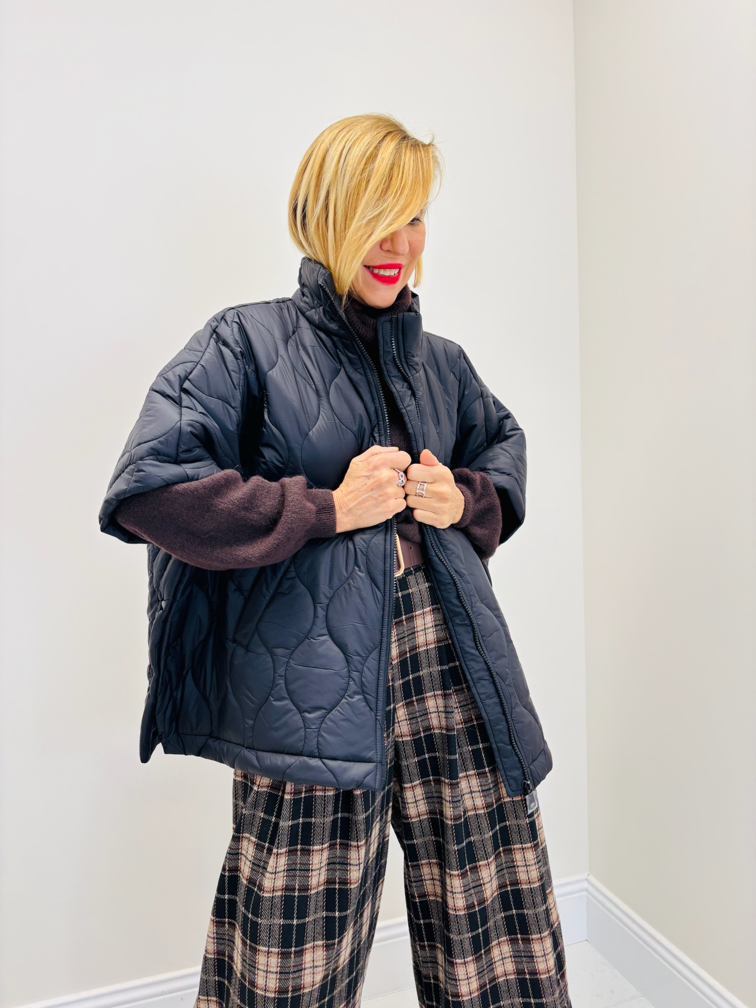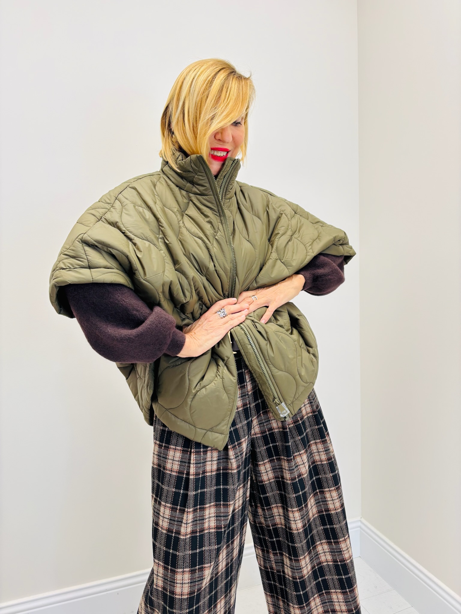 La pièce cocooning et moderne par excellence : cette doudoune sans manches matelassée séduit par sa coupe oversize et son matelassage graphique en forme de vague. Ultra légère mais chaude, elle permet de rester stylée tout en gardant une liberté de mouvement maximale.