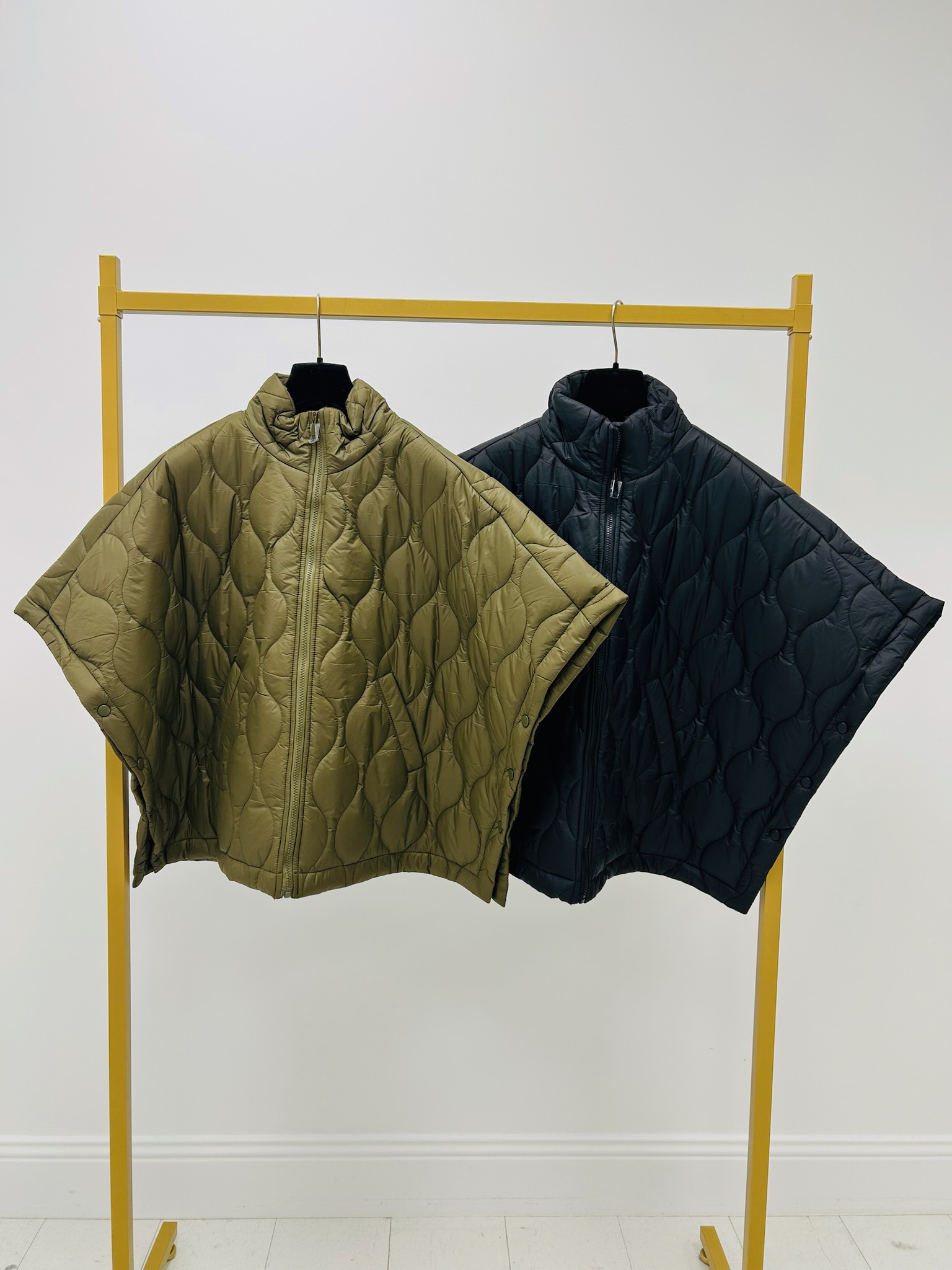 Son col montant zippé et ses boutons pression sur les côtés apportent confort et praticité au quotidien, tout en lui donnant une touche contemporaine.