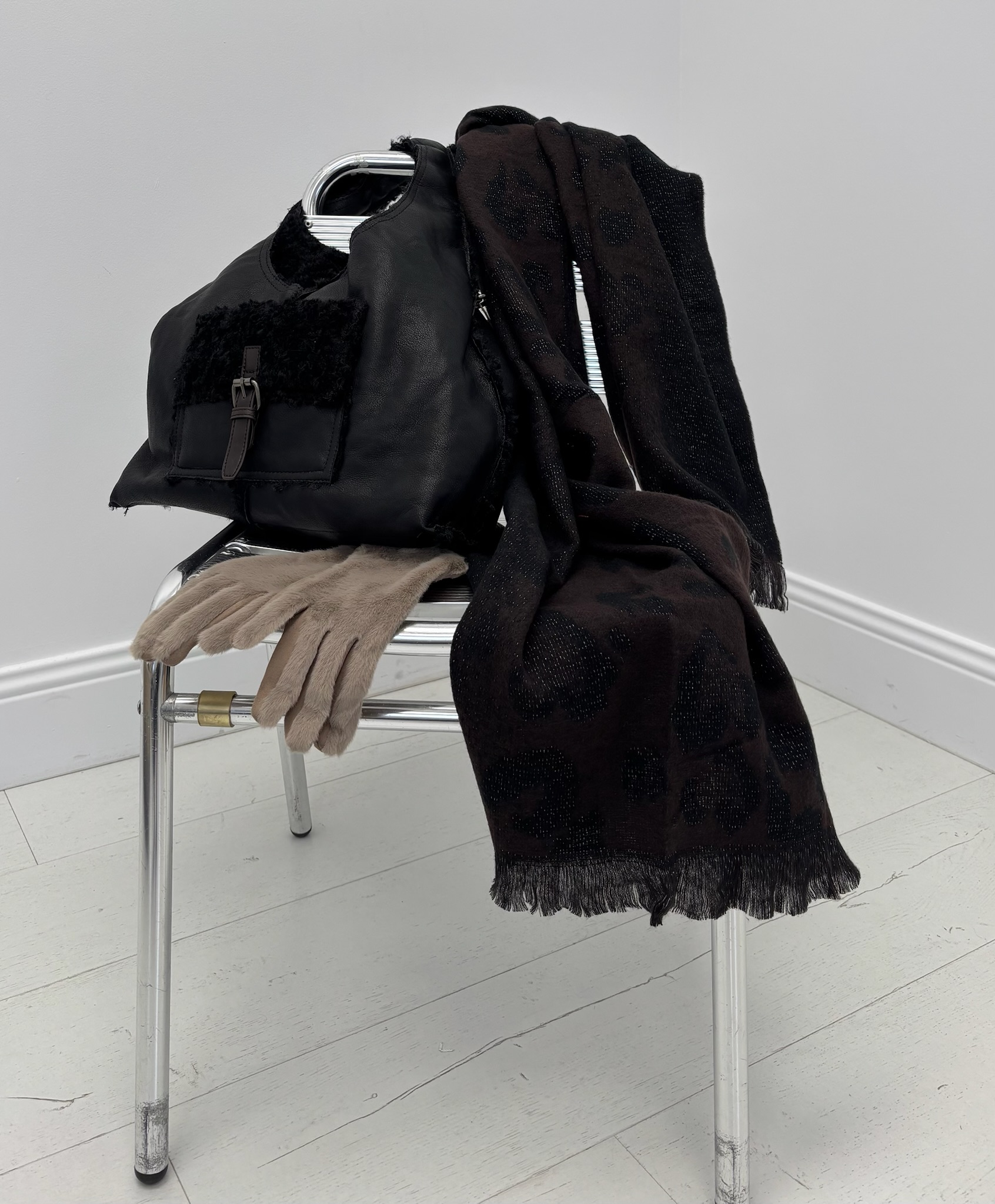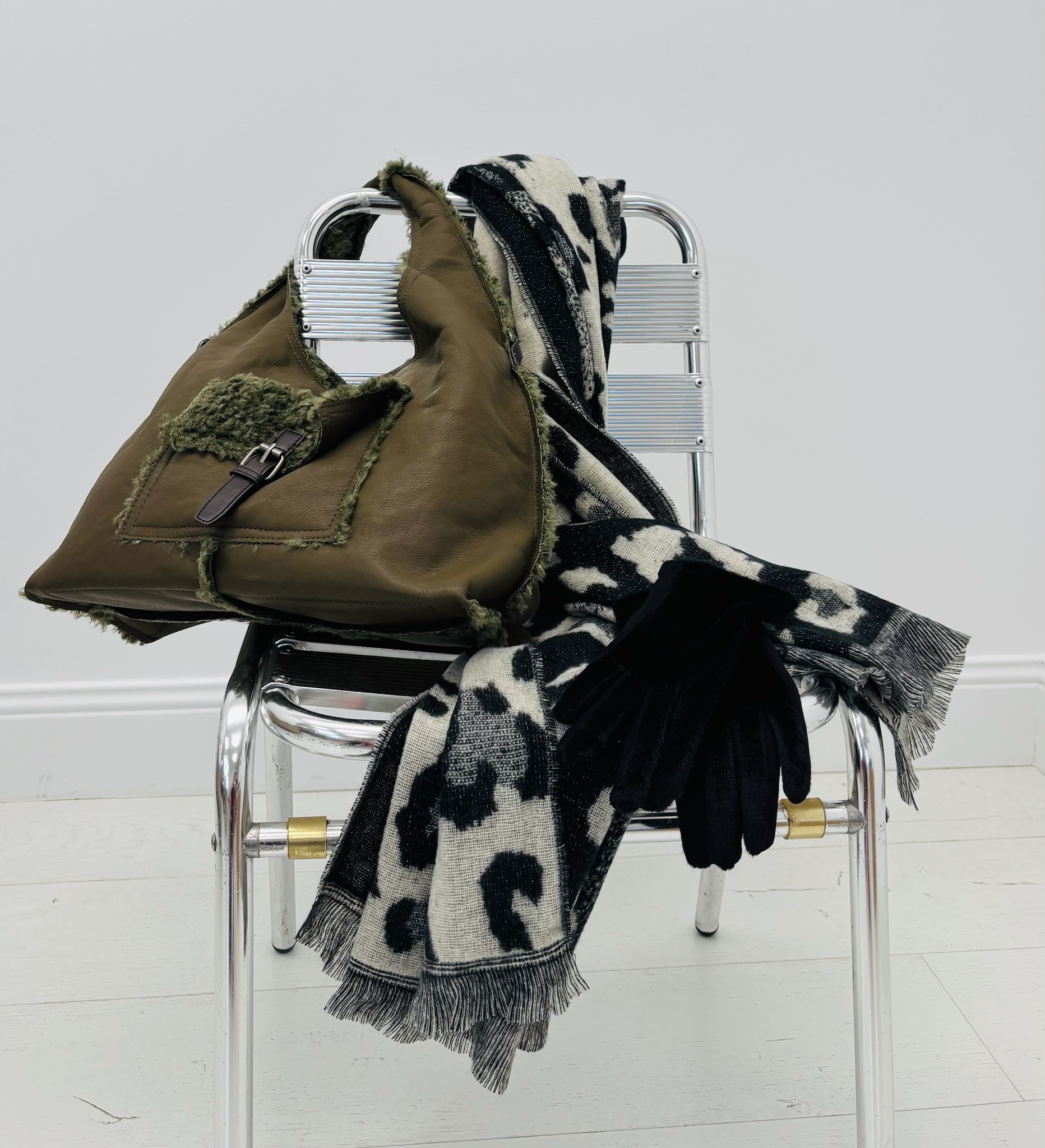 Portée ici avec un sac en fausse fourrure et des gants, elle complète à merveille un look chic et urbain.