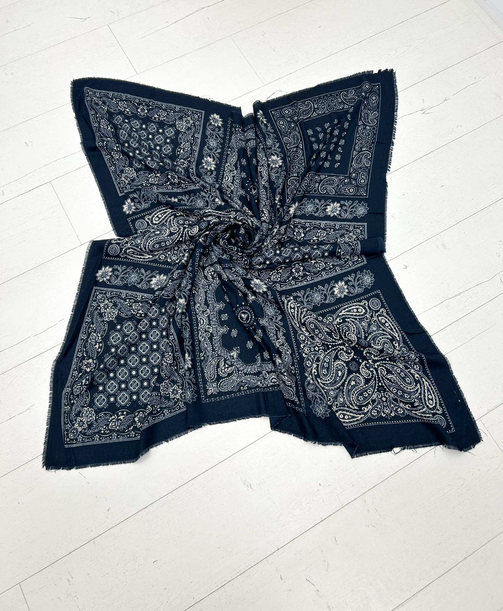 Une écharpe légère et élégante, au motif bandana revisité dans une version chic et intemporelle.