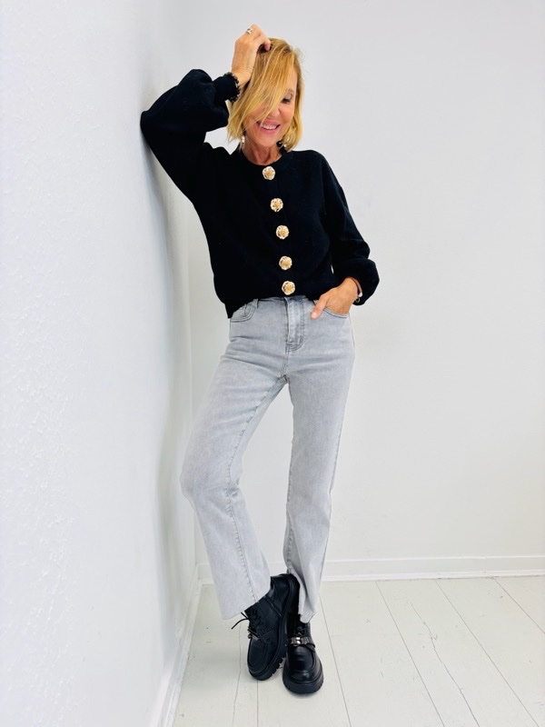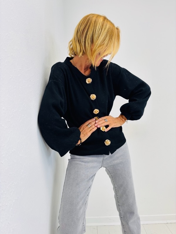 Un gilet moderne et raffiné, sublimé par ses boutons bijoux dorés qui lui apportent une touche chic et originale. Conçu dans une maille douce contenant 51% de viscose, il allie confort et style au quotidien.