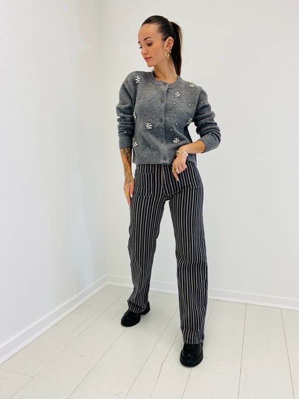 Un gilet raffiné qui allie douceur et élégance. Sa maille confortable est sublimée par des perles et des broderies florales scintillantes, qui apportent une touche chic et féminine. Sa coupe droite et son col rond en font une pièce facile à porter au quotidien comme pour une occasion spéciale.