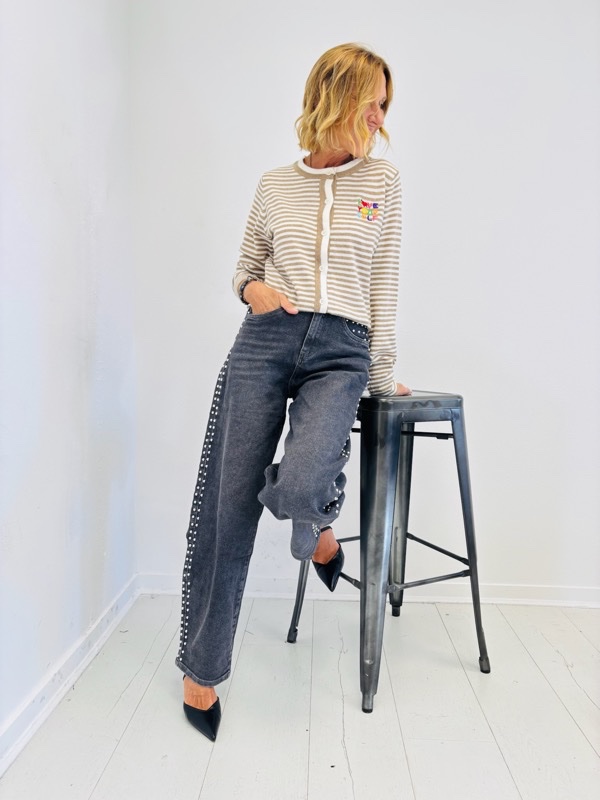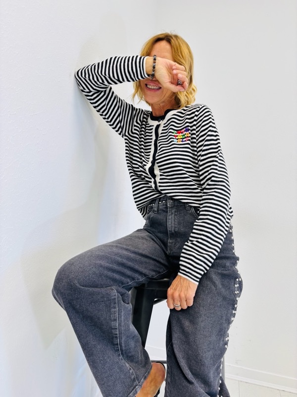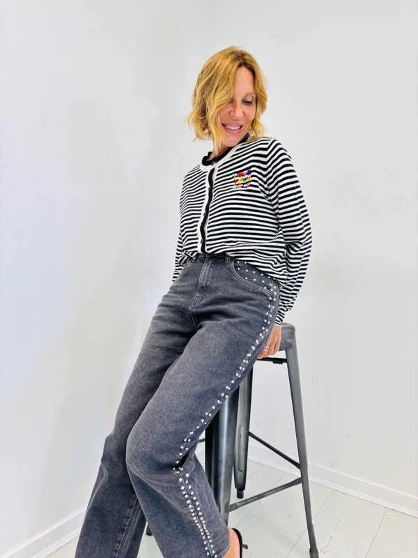 Gilet Rayé avec Broderie