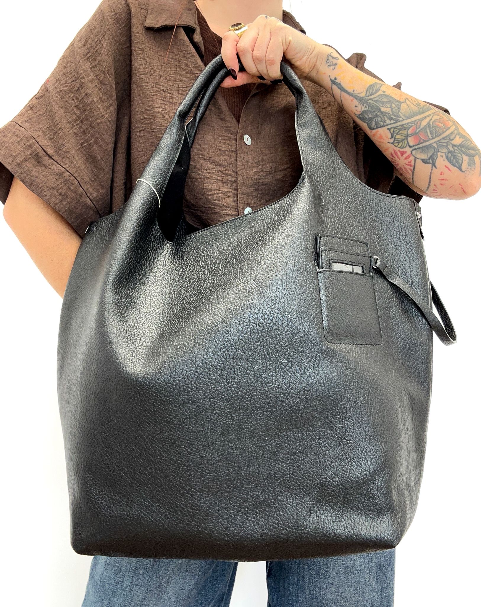 Un sac spacieux et moderne, parfait pour accompagner vos journées. Avec sa grande capacité et son porte-carte intégré, il allie style et fonctionnalité.