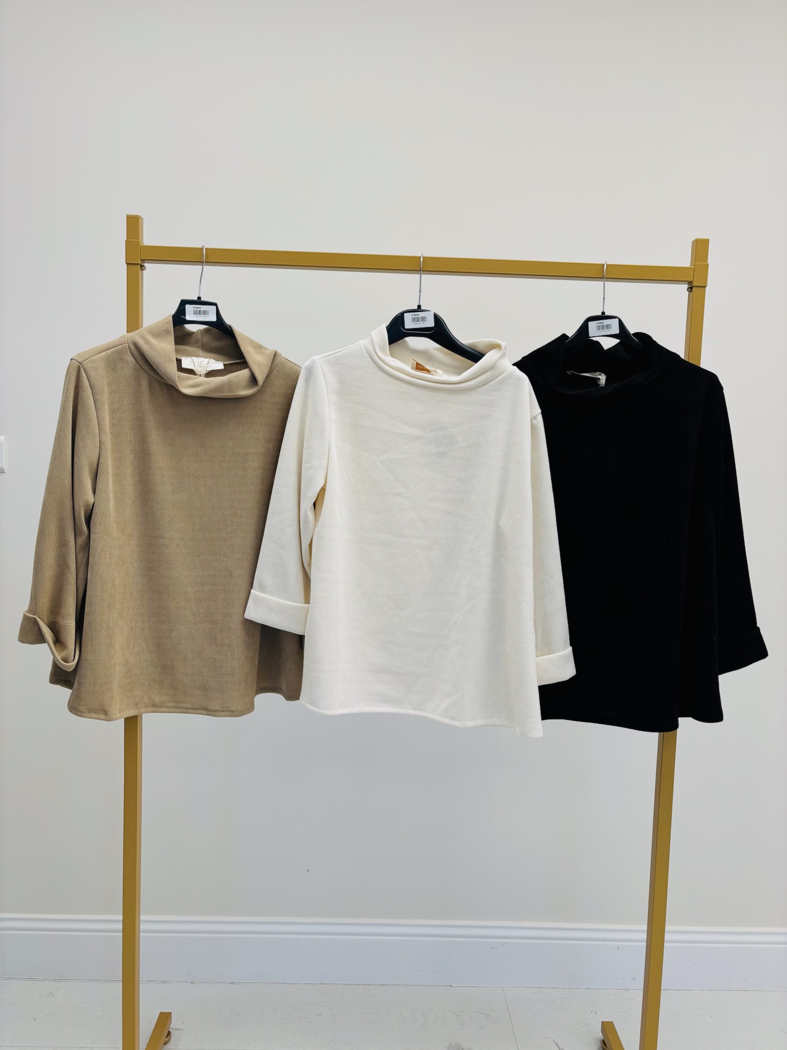 Une coupe droite, épurée et facile à associer, déclinée dans trois teintes élégantes : camel, écru, et noir profond.