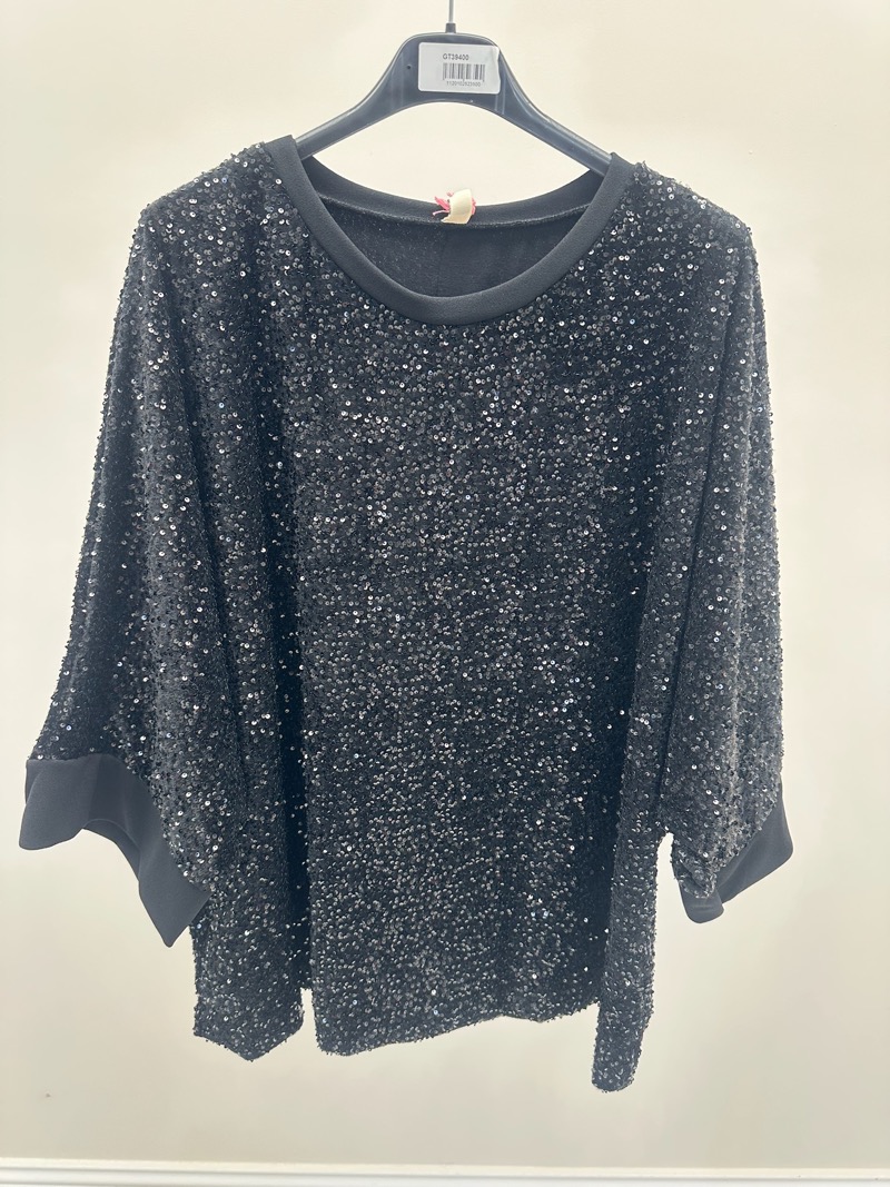 Haut grande taille à sequins noirs – Élégance scintillante et coupe fluide