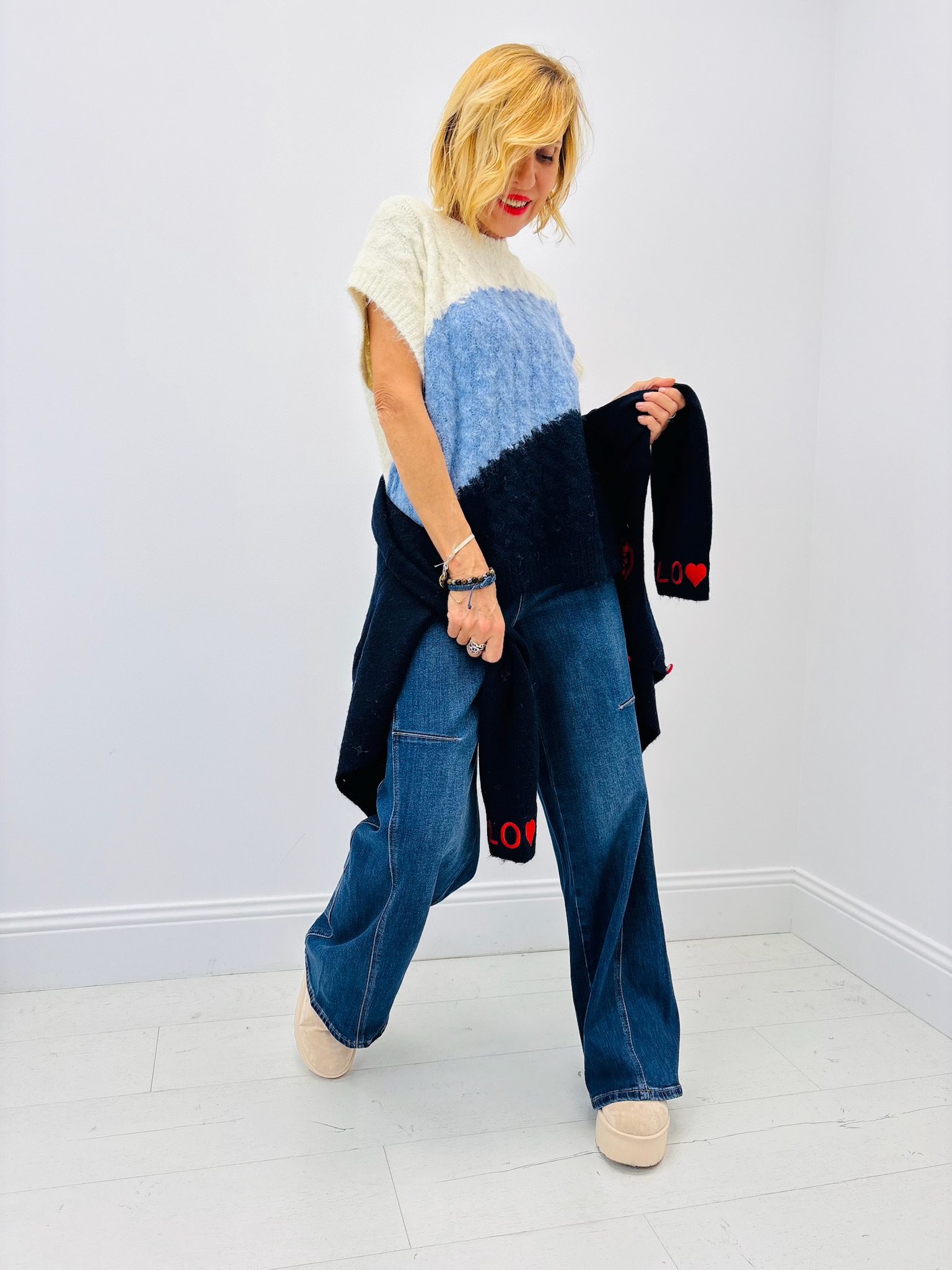 Un jean tendance à la coupe ample et structurée, parfait pour allonger la silhouette et offrir un look moderne. Sa taille haute met en valeur la taille, tandis que sa jambe large assure confort et allure décontractée. Fabriqué dans une toile denim souple et résistante, il se porte aussi bien avec des baskets que des bottines.