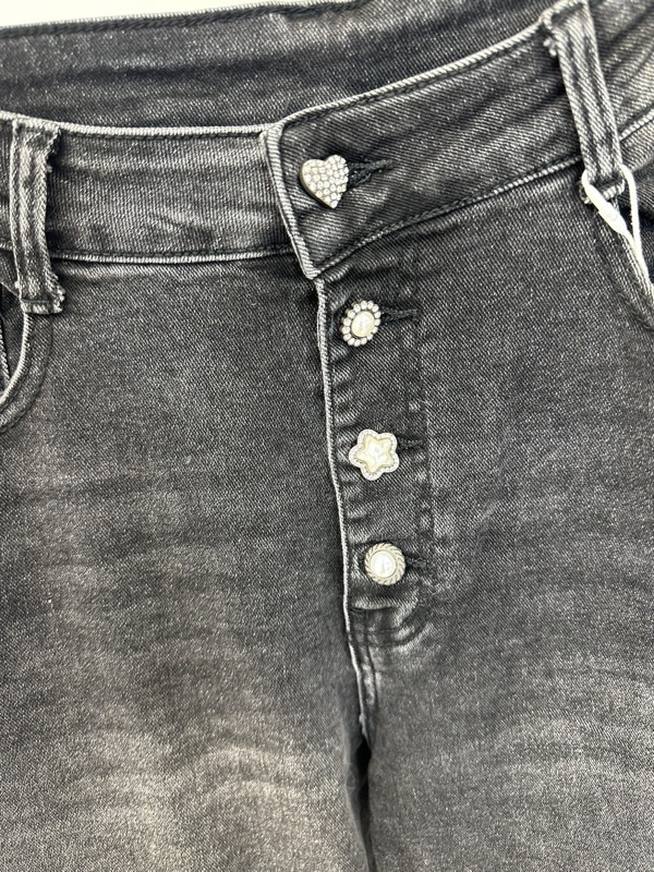 Jean droit noir délavé – Boutons fantaisie – Grande Taille