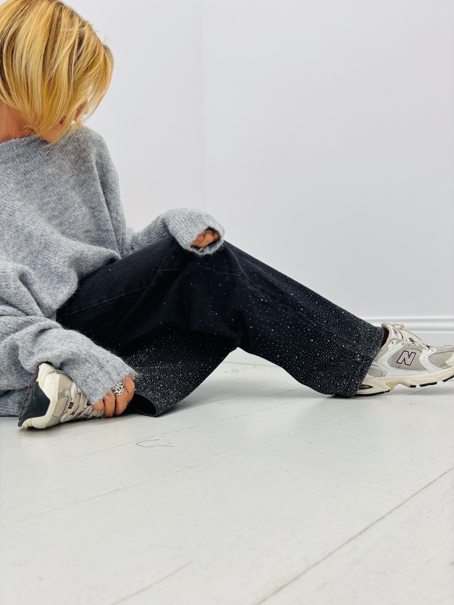 À associer avec un pull oversize pour un look casual chic ou un blazer noir et des talons pour une version plus habillée. Les strass apportent la touche de lumière parfaite pour vos soirées d’hiver.