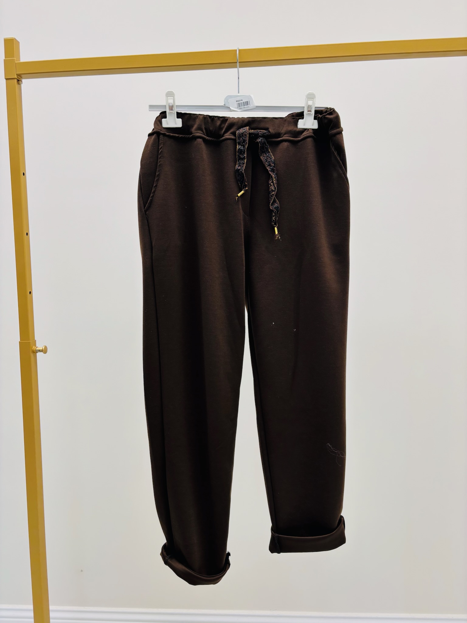 Ce jogging fluide made in Italy se distingue par sa matière douce et légère en viscose, son tombé parfait et sa coupe féminine légèrement resserrée aux chevilles.