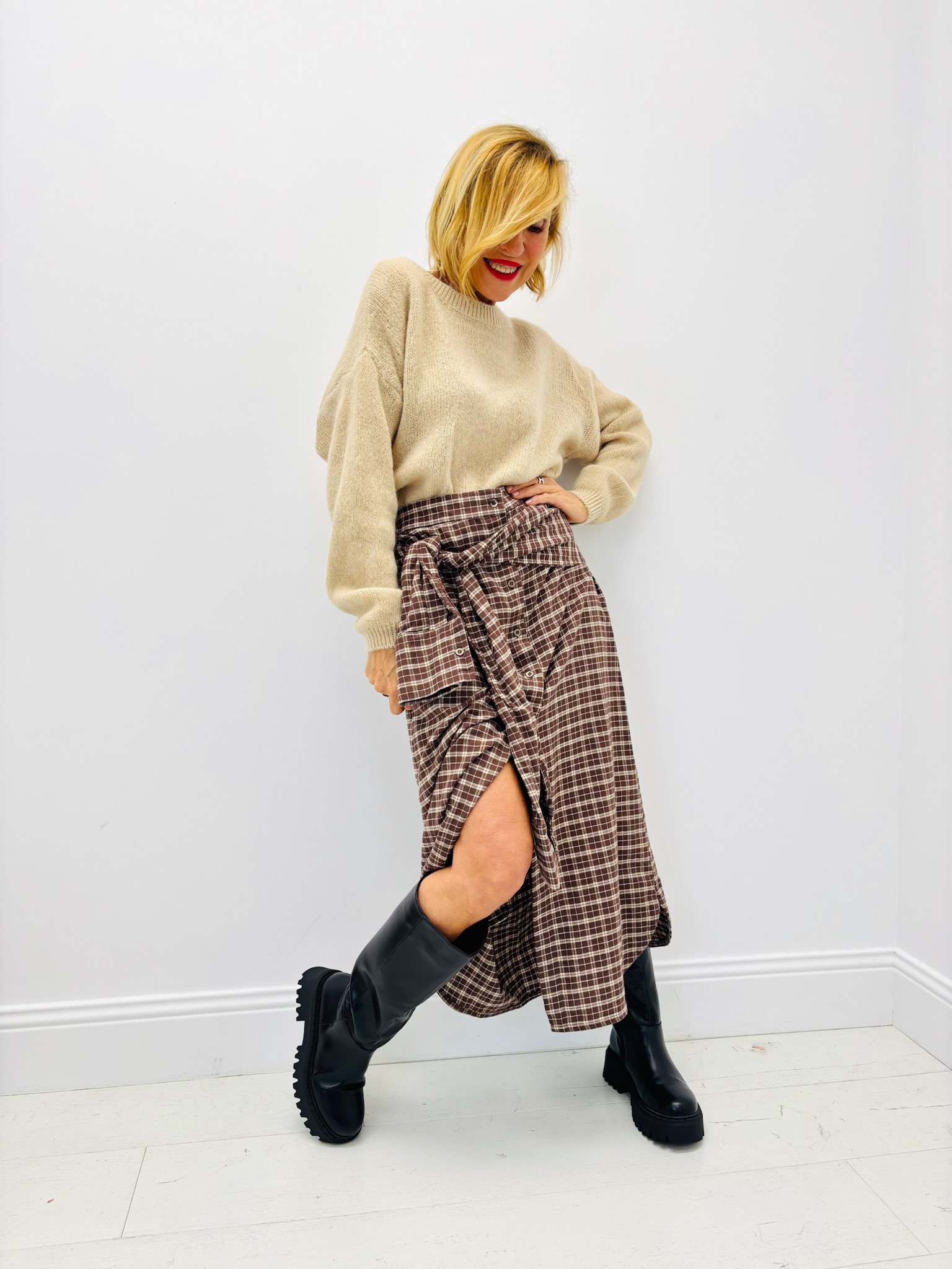 À combiner avec un pull en maille ou un gilet oversize pour un look cocooning, ou avec une chemise cintrée pour une allure plus citadine.