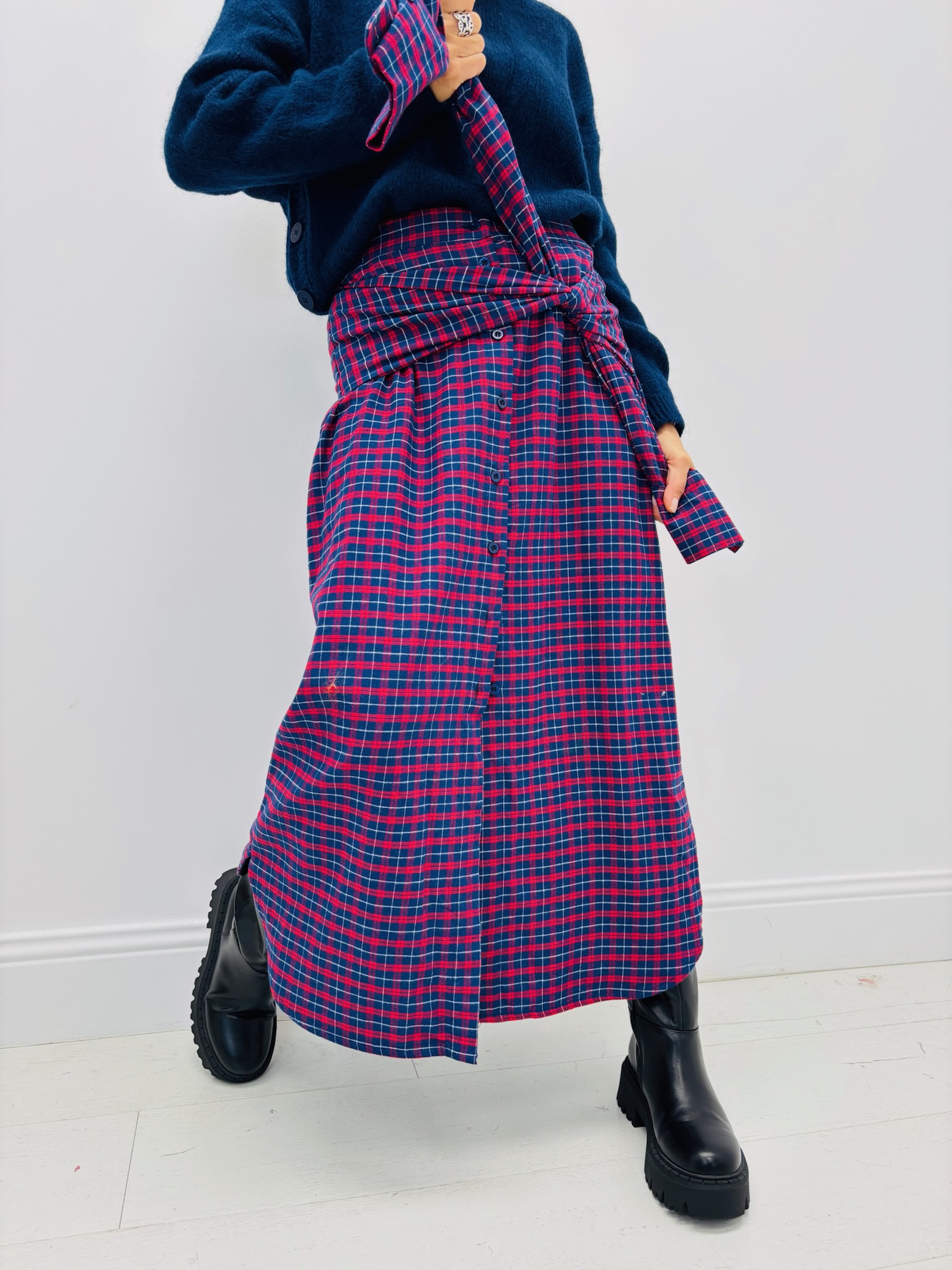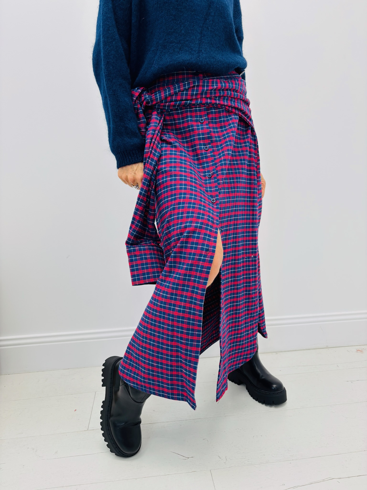 Une pièce originale et tendance inspirée de la chemise d’homme revisitée en jupe ! Réalisée en 100 % coton doux, elle séduit par son effet noué à la taille et son style décontracté-chic, parfait pour l’automne.