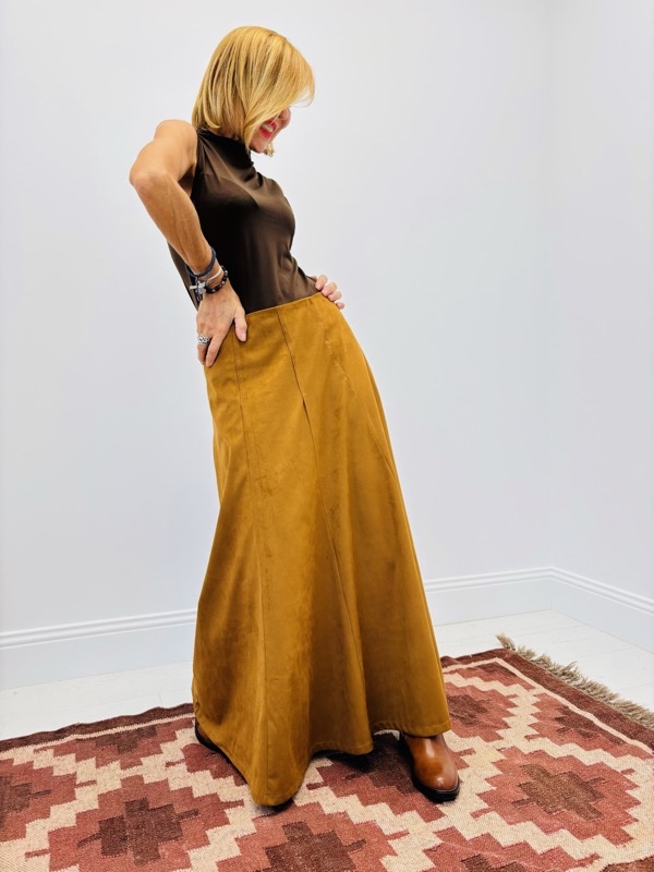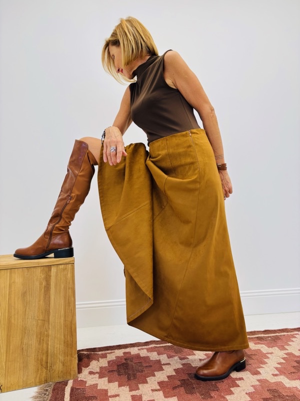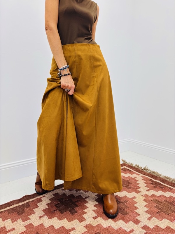 • Détails : surpiqûres apparentes qui structurent la jupe et apportent du caractère.