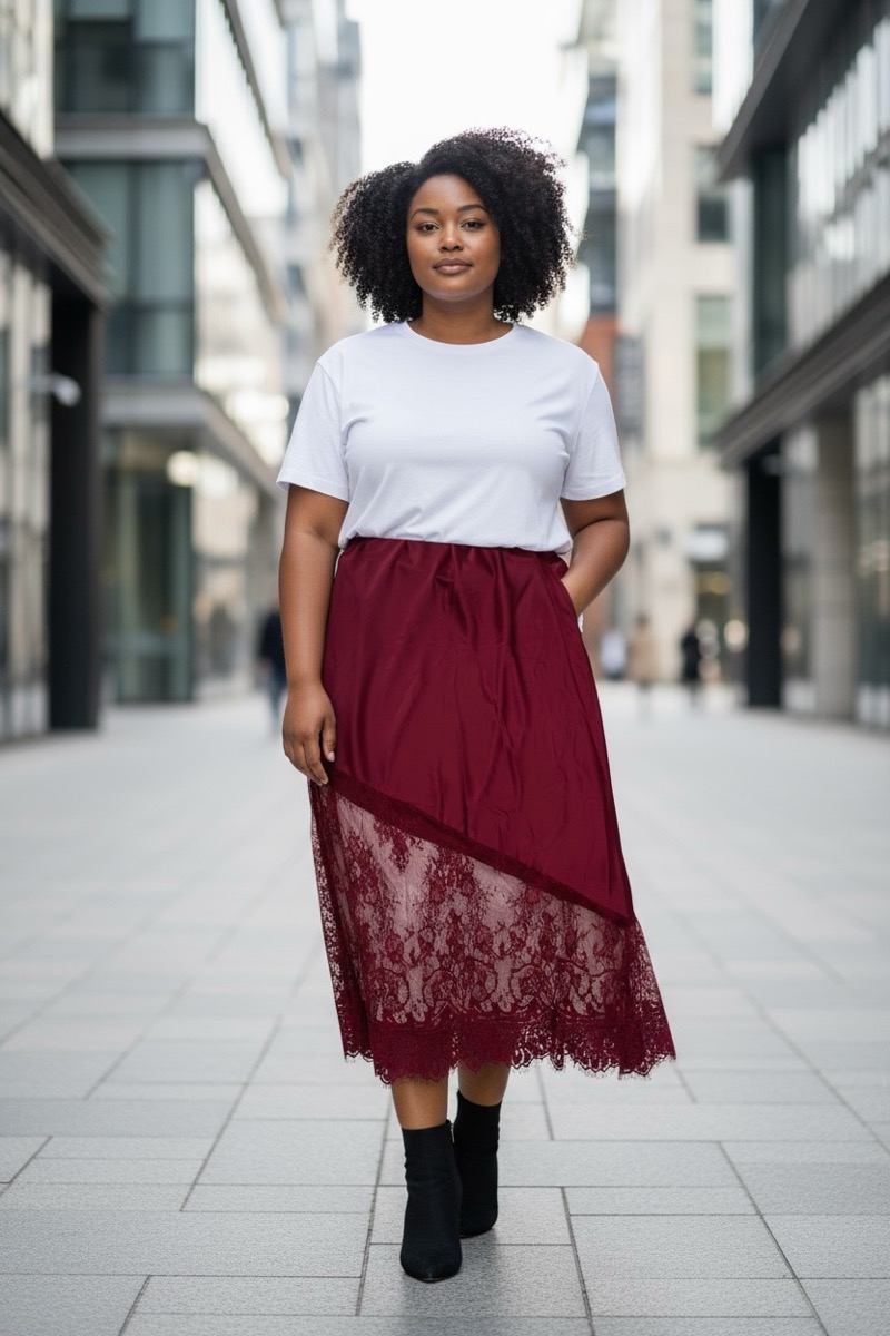 Jupe satinée avec dentelle asymétrique – Collection Grande Taille