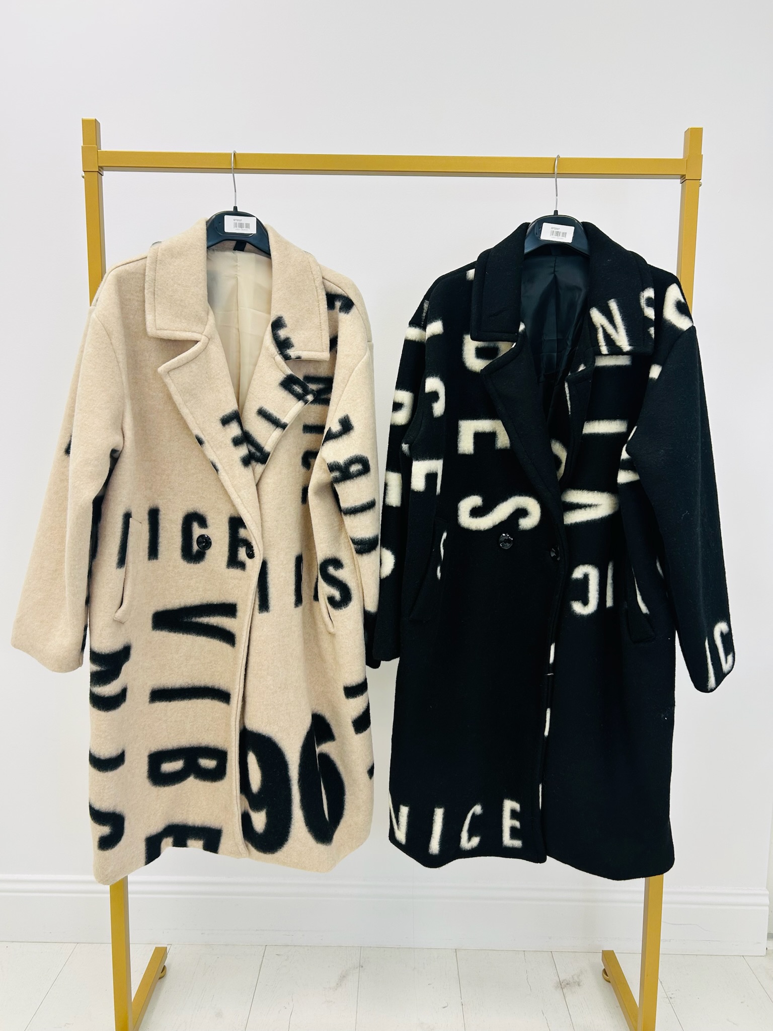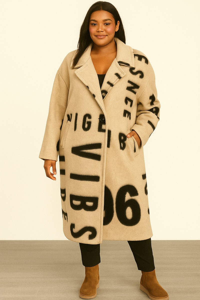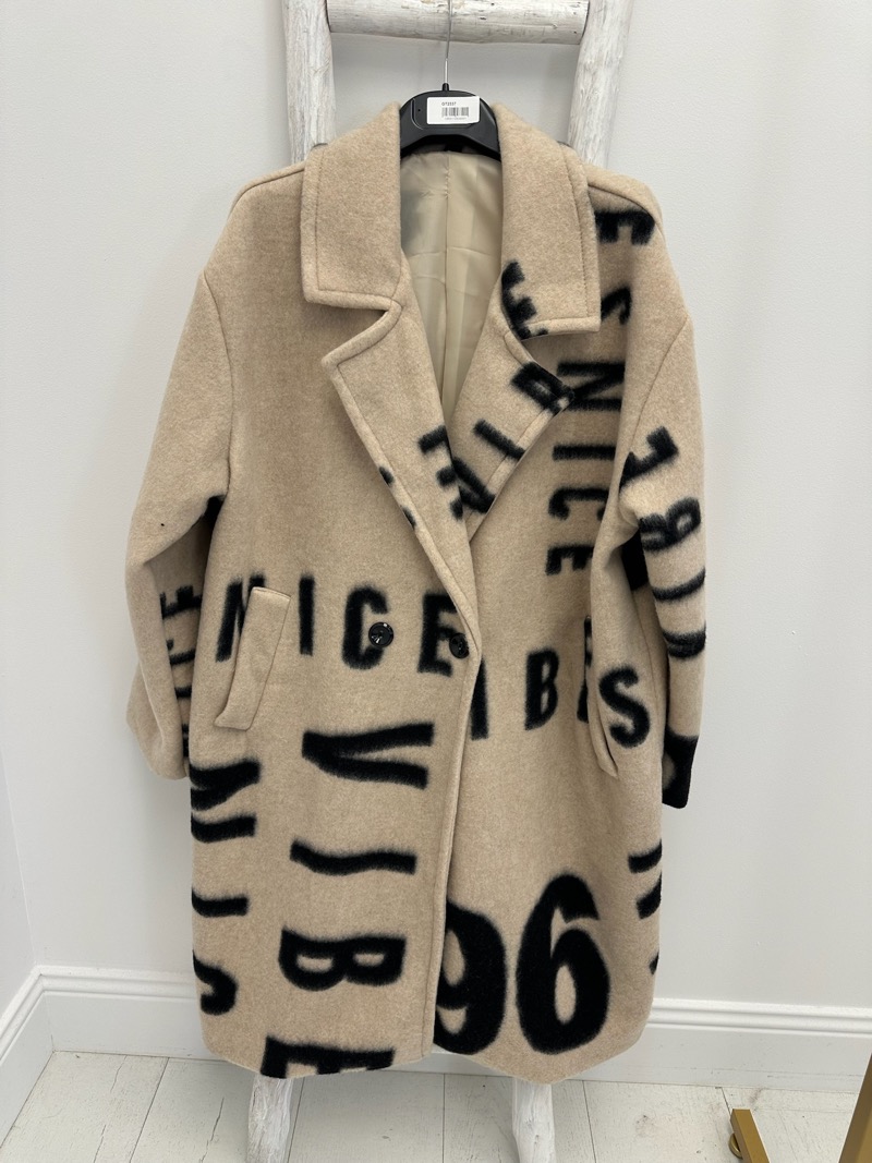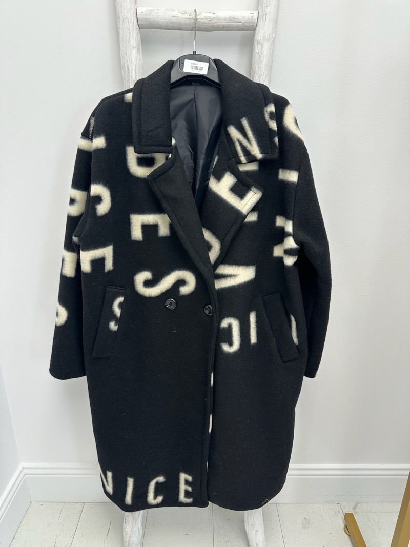 • Manteau mi-long à imprimé lettres all-over