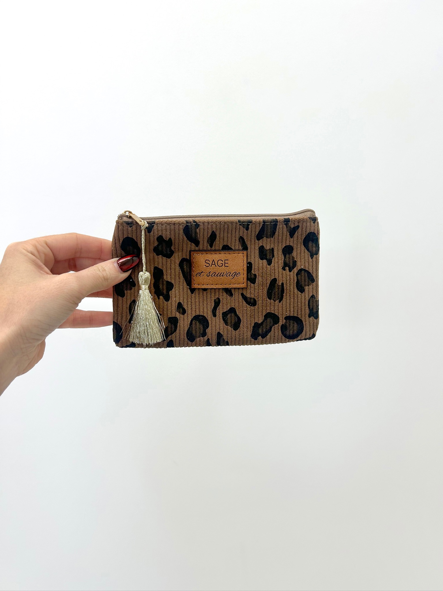 Mini Pochette Léopard “Sage & Sauvage” – Velours Côtelé & Détail Pompon