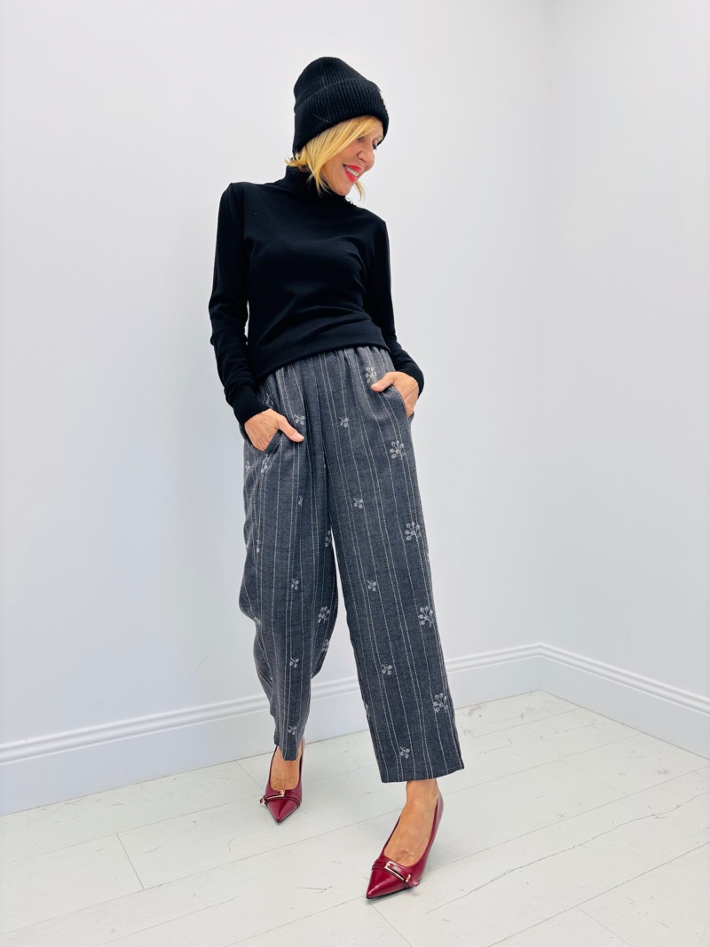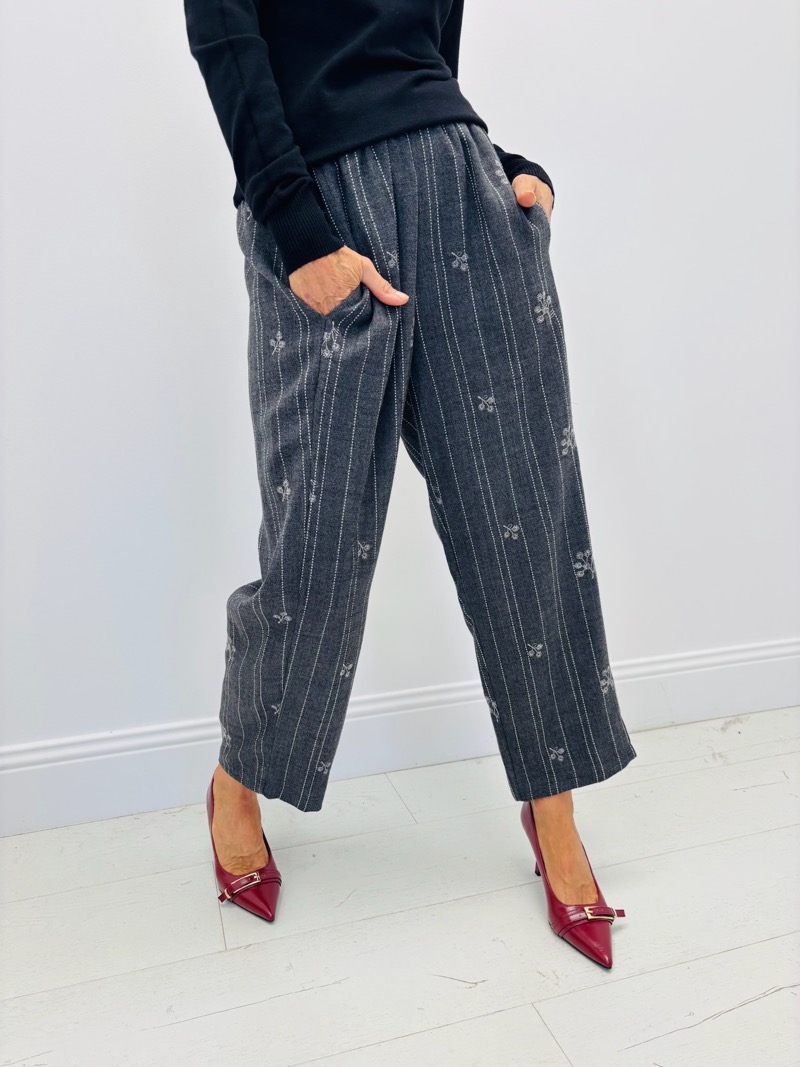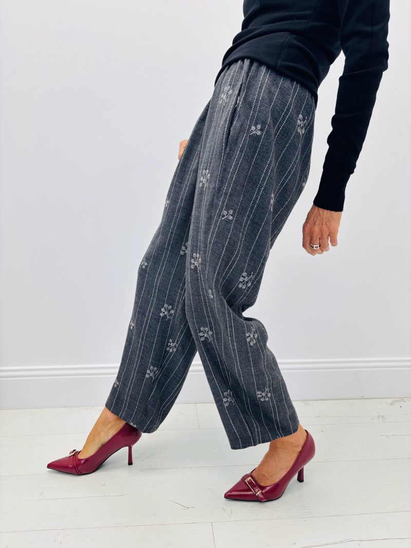 Un pantalon fluide et élégant signé Les Impatientes, qui allie confort et style grâce à sa coupe droite et ses détails raffinés. Ses fines rayures verticales sont rehaussées de petits motifs floraux discrets, apportant une touche féminine et moderne.
