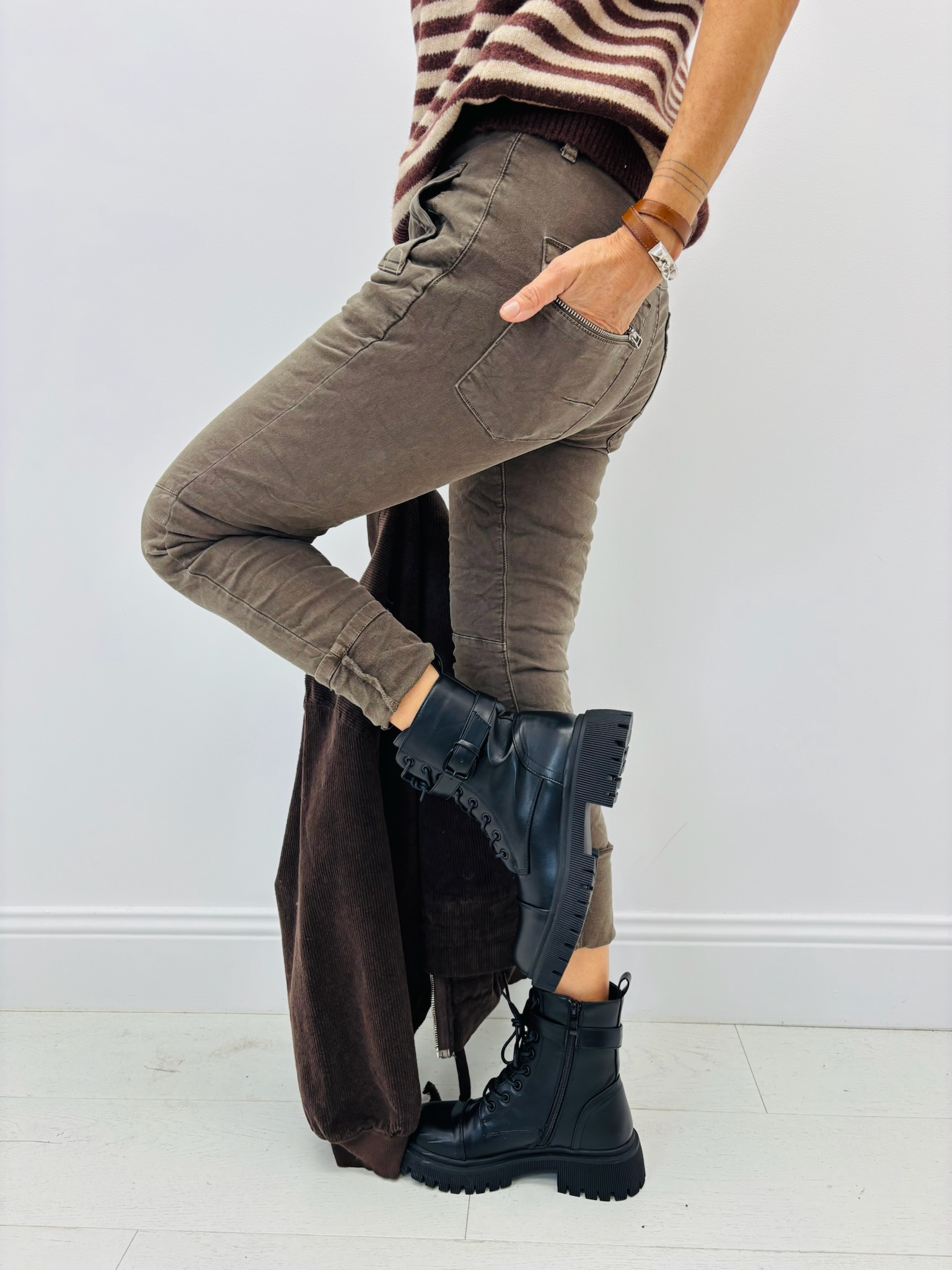 • Taille mi-haute avec fermeture à 4 boutons apparents