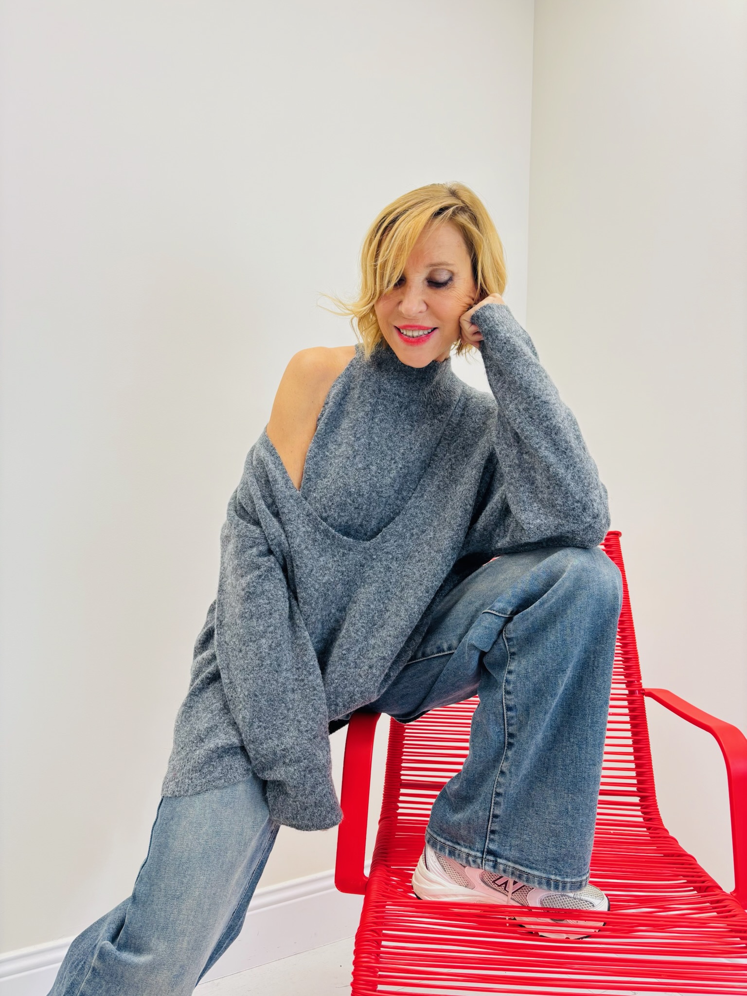 Le pull HÉLINE offre un jeu de superposition sophistiqué tout en restant casual.