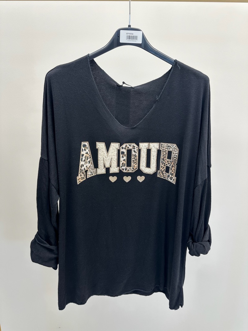 Message “AMOUR” brodé avec détails léopard et relief