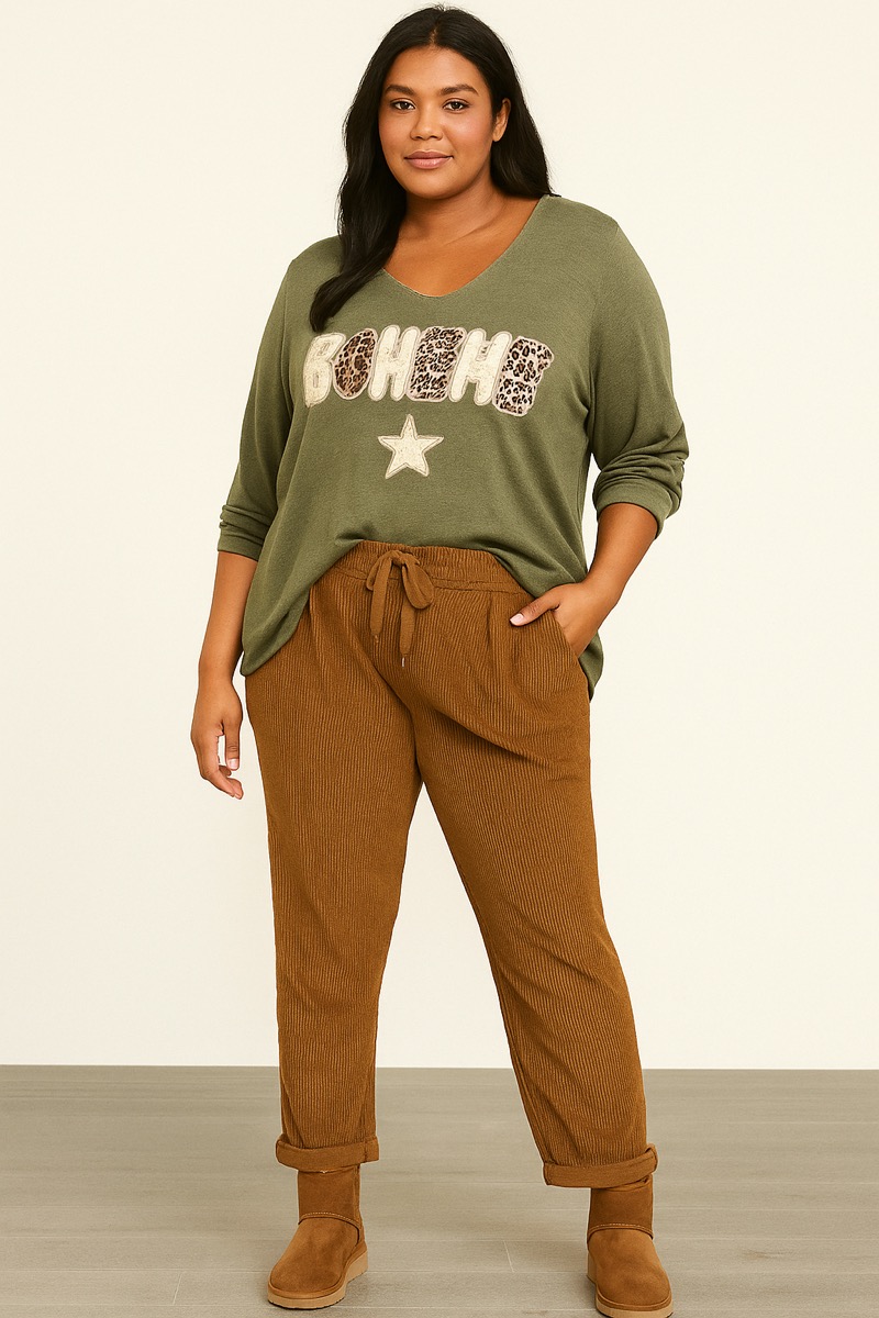 Pull « Bohème » à message texturé – Collection Grande Taille