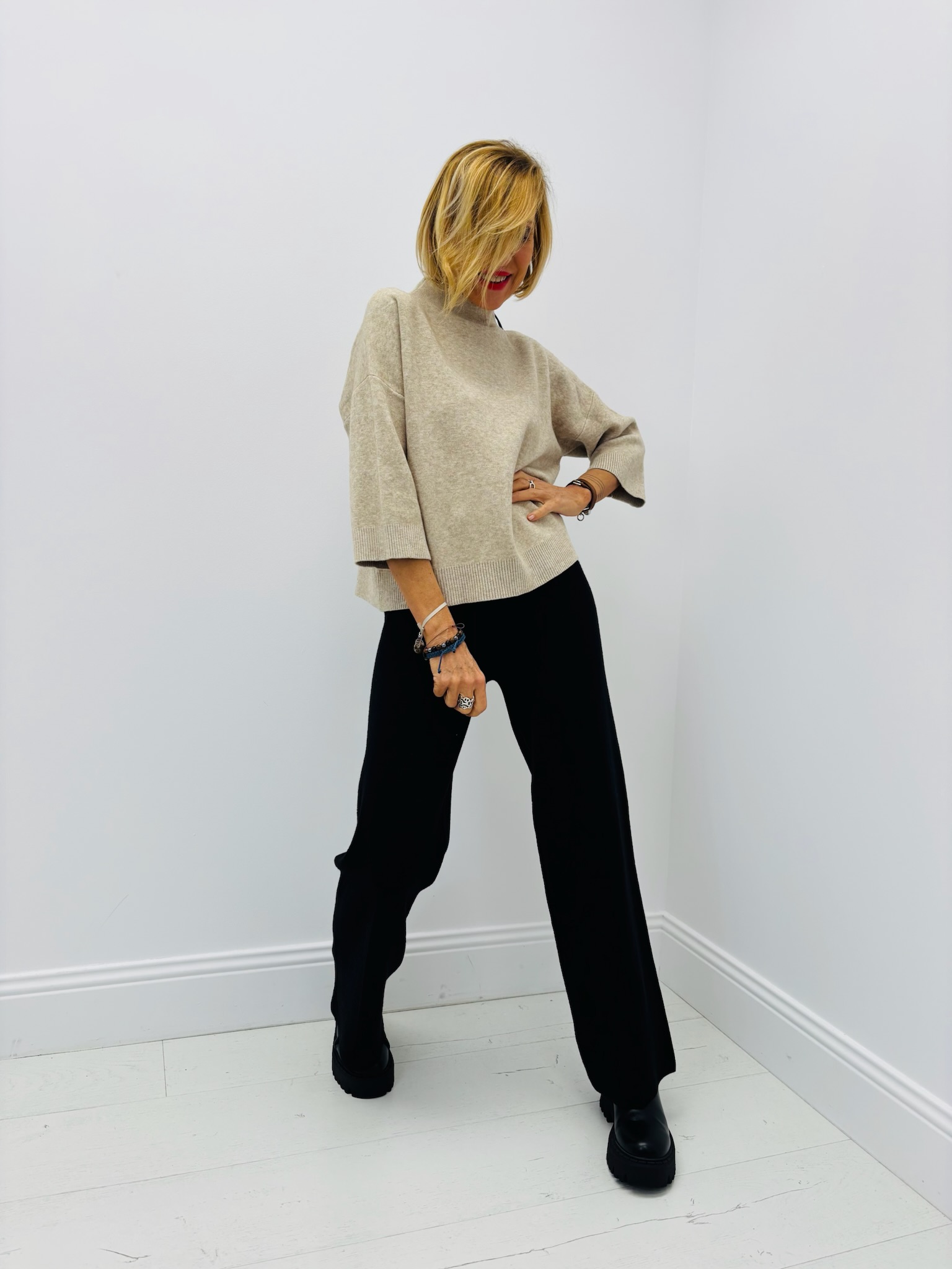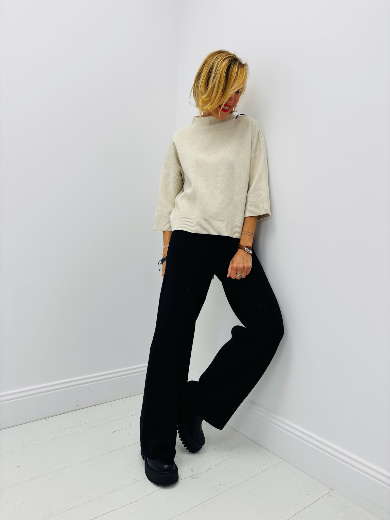 Un essentiel chic et minimaliste signé VALENTYNE. Ce pull en maille de viscose séduit par sa coupe moderne, ses manches 3/4 et son col montant élégant. Léger, doux et agréable à porter, il est parfait pour la mi-saison comme pour l’hiver.