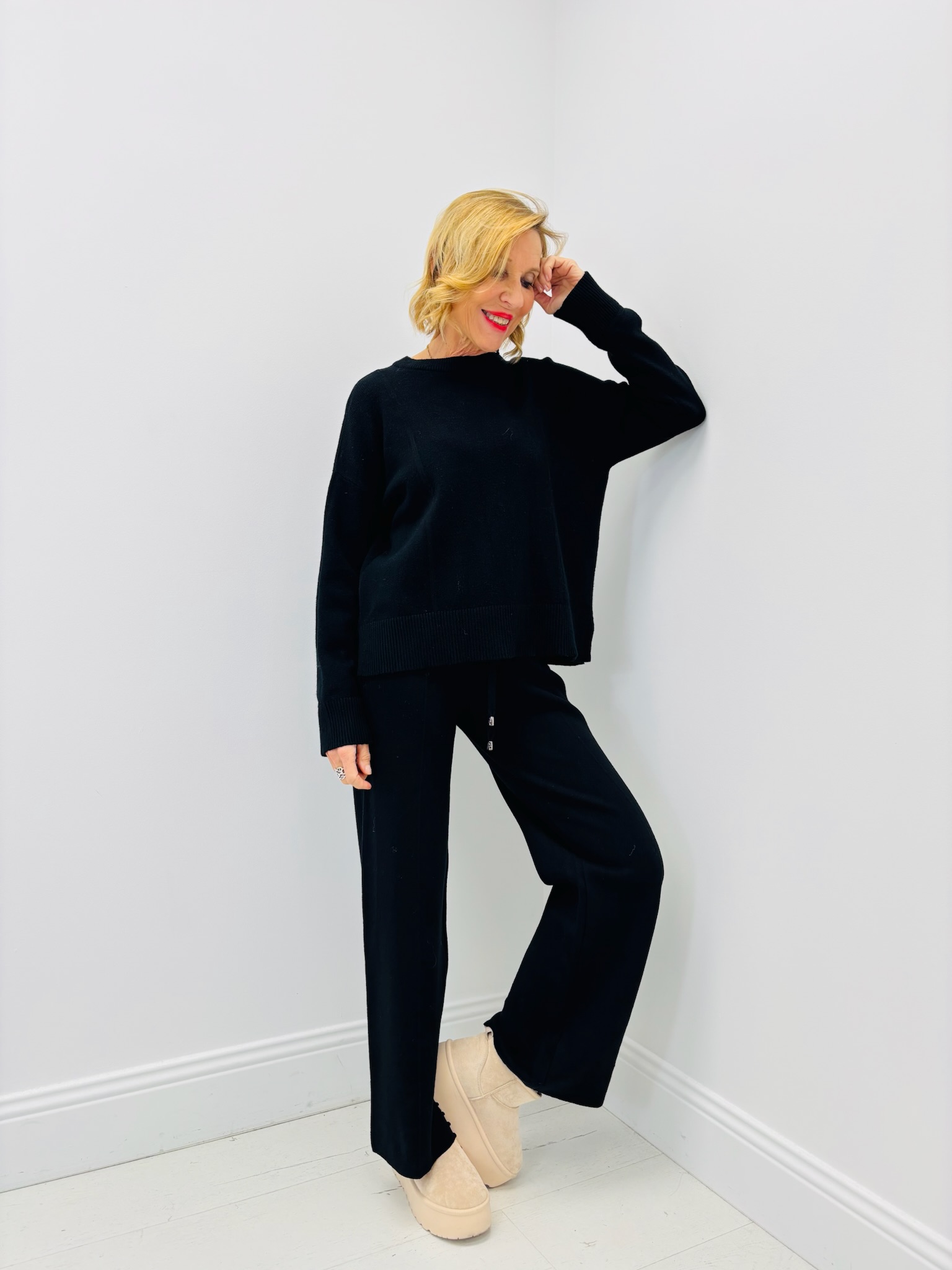 À porter avec un pantalon large en maille pour un look cocoon chic, ou avec un jean droit et des baskets blanches pour une allure casual élégante.