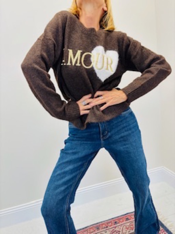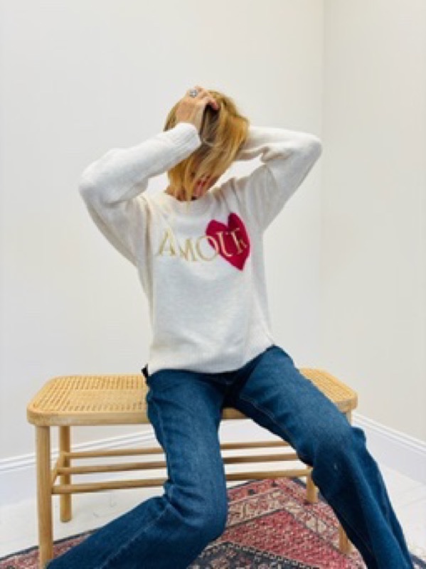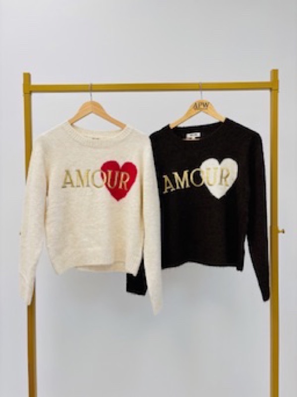 Un pull tendance et plein de charme, orné du mot AMOUR et d’un cœur contrastant. Chaud et confortable grâce à sa maille douce enrichie en laine, il apporte une touche romantique et stylée à vos looks de saison.