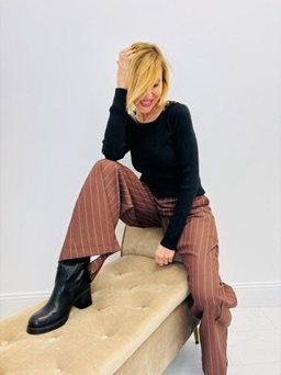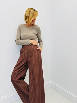 Comme sur la photo, ce pull se marie parfaitement avec un pantalon tailleur ou un jean pour un look chic du quotidien.