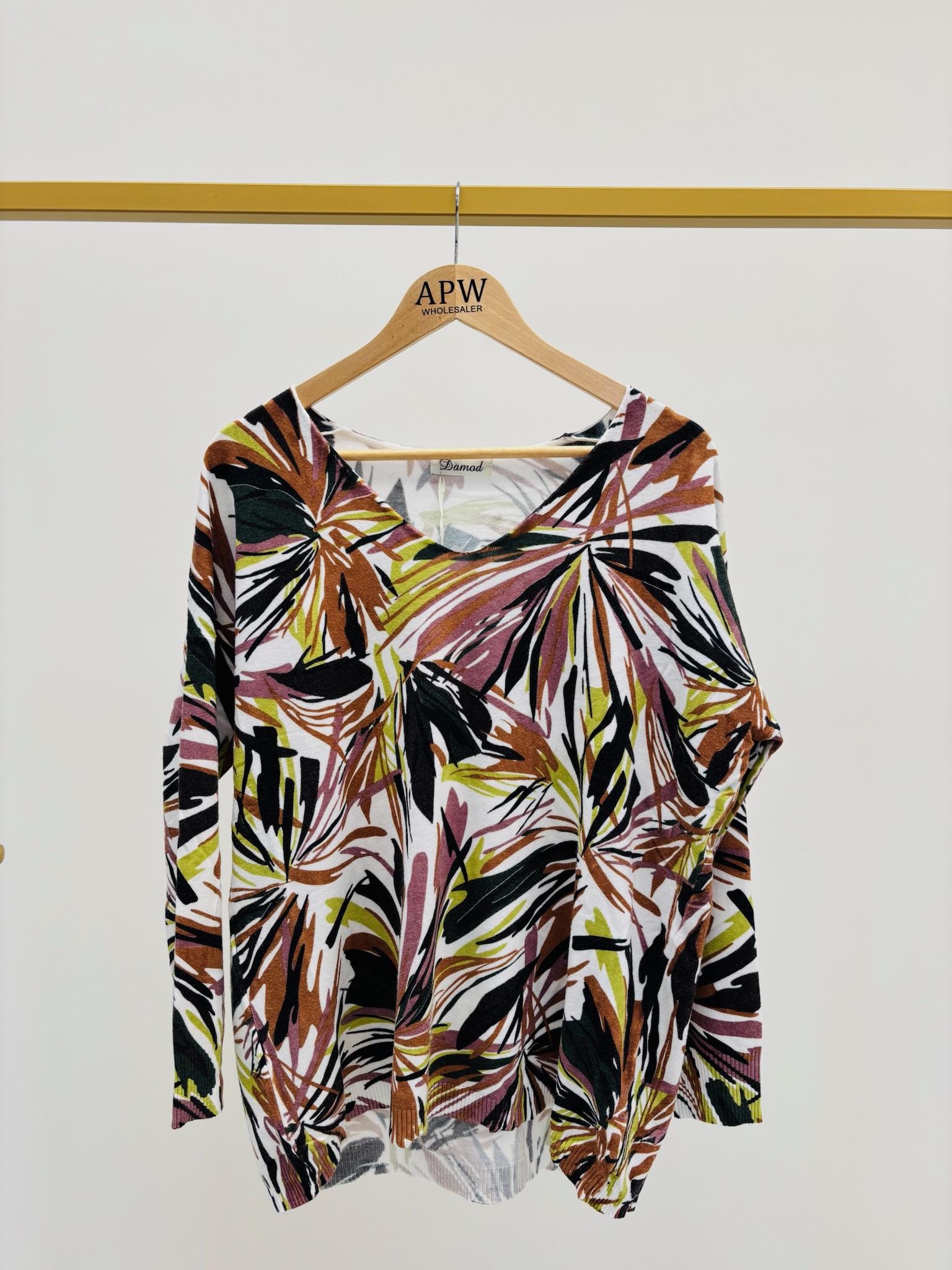 Pull Imprimé Feuillage Coloré – Fluidité et éclat naturel