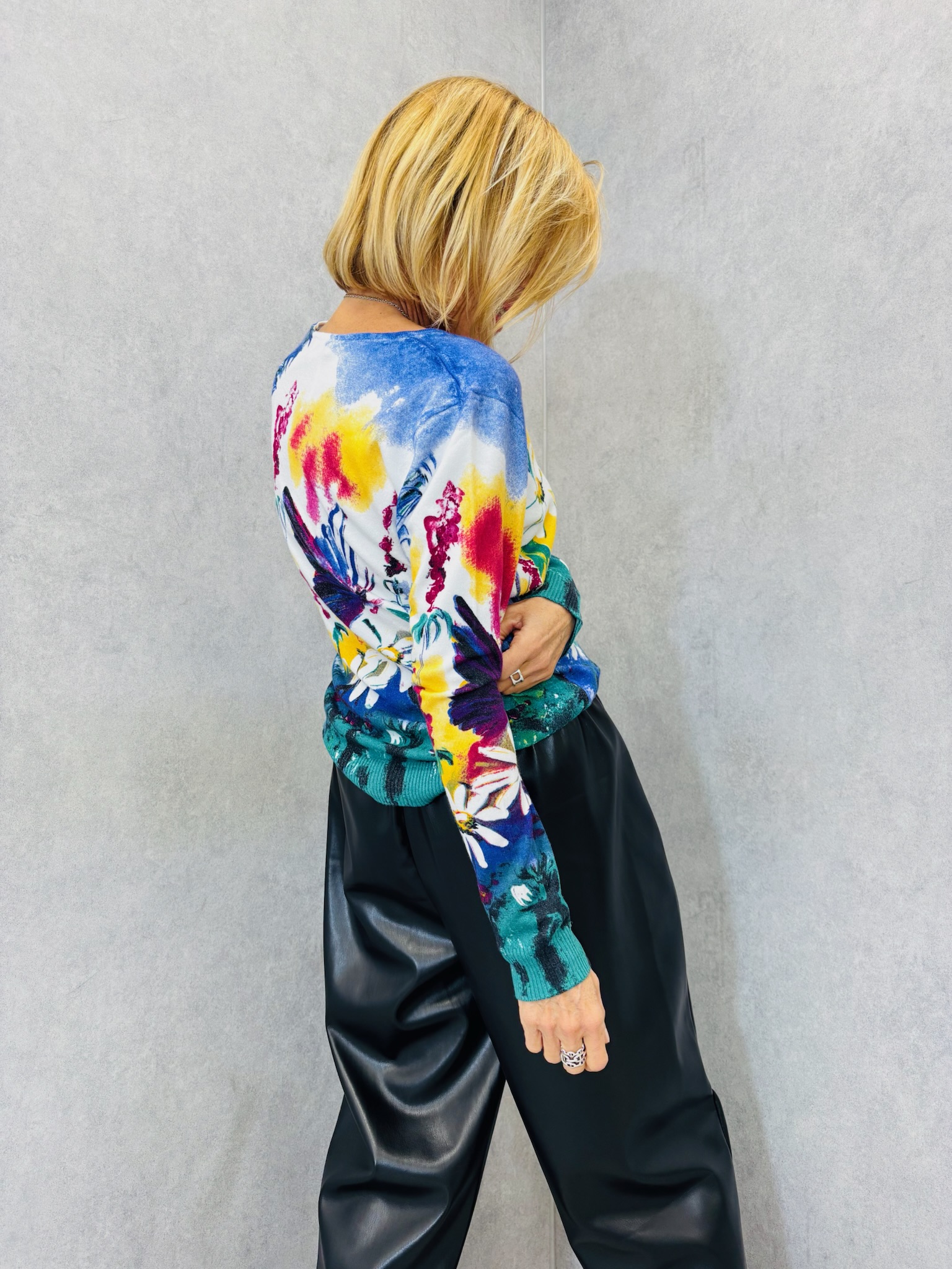 Un pull lumineux et plein de bonne humeur ! Ce modèle se distingue par son imprimé artistique aux couleurs éclatantes et sa matière douce et fluide en viscose-modal. Léger, confortable et féminin, il dynamise instantanément vos looks de mi-saison.