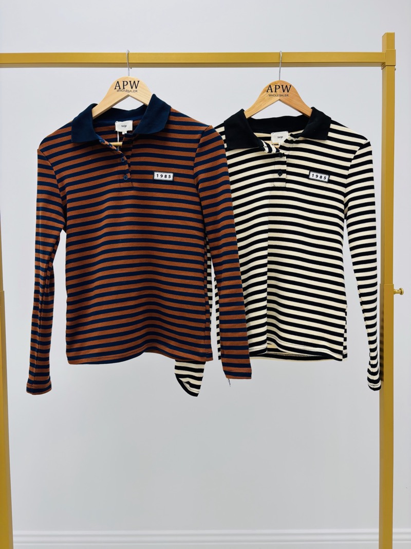Un pull polo élégant et confortable, revisité dans une version à rayures intemporelles. Avec sa coupe ajustée et son col contrastant, il est parfait pour un look casual chic.