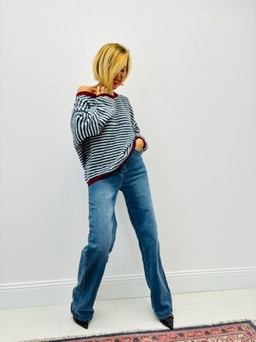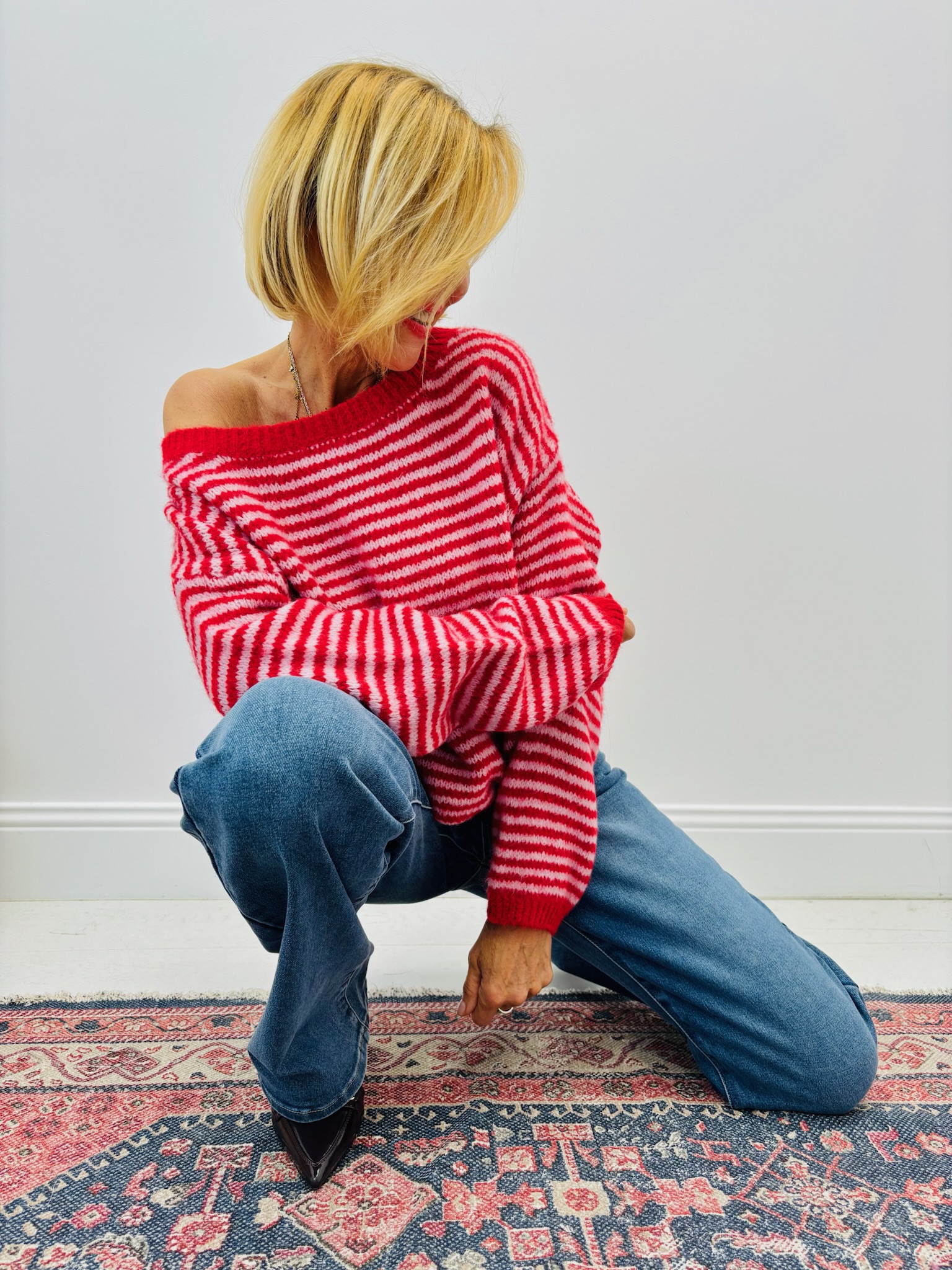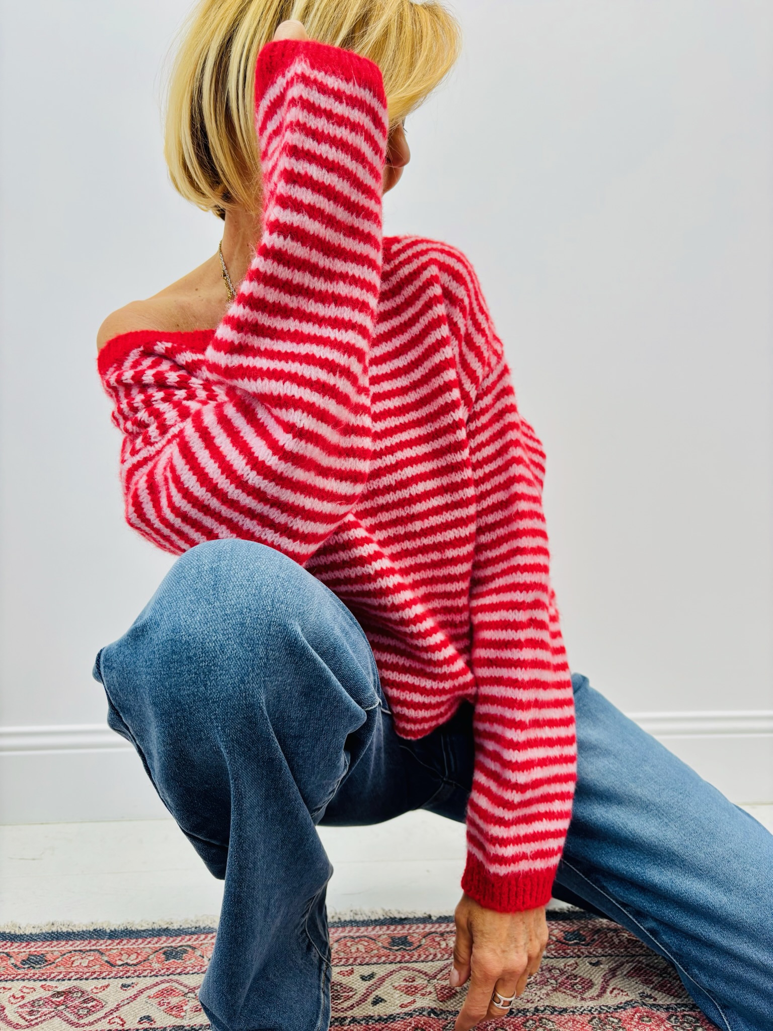 Ce modèle rayé mise sur une maille moelleuse et une palette de couleurs vibrantes, parfaite pour illuminer vos looks d’automne.