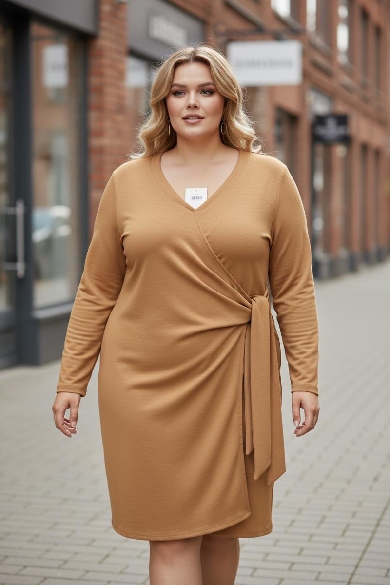 Robe cache-cœur camel ceinturée – Collection Grande Taille