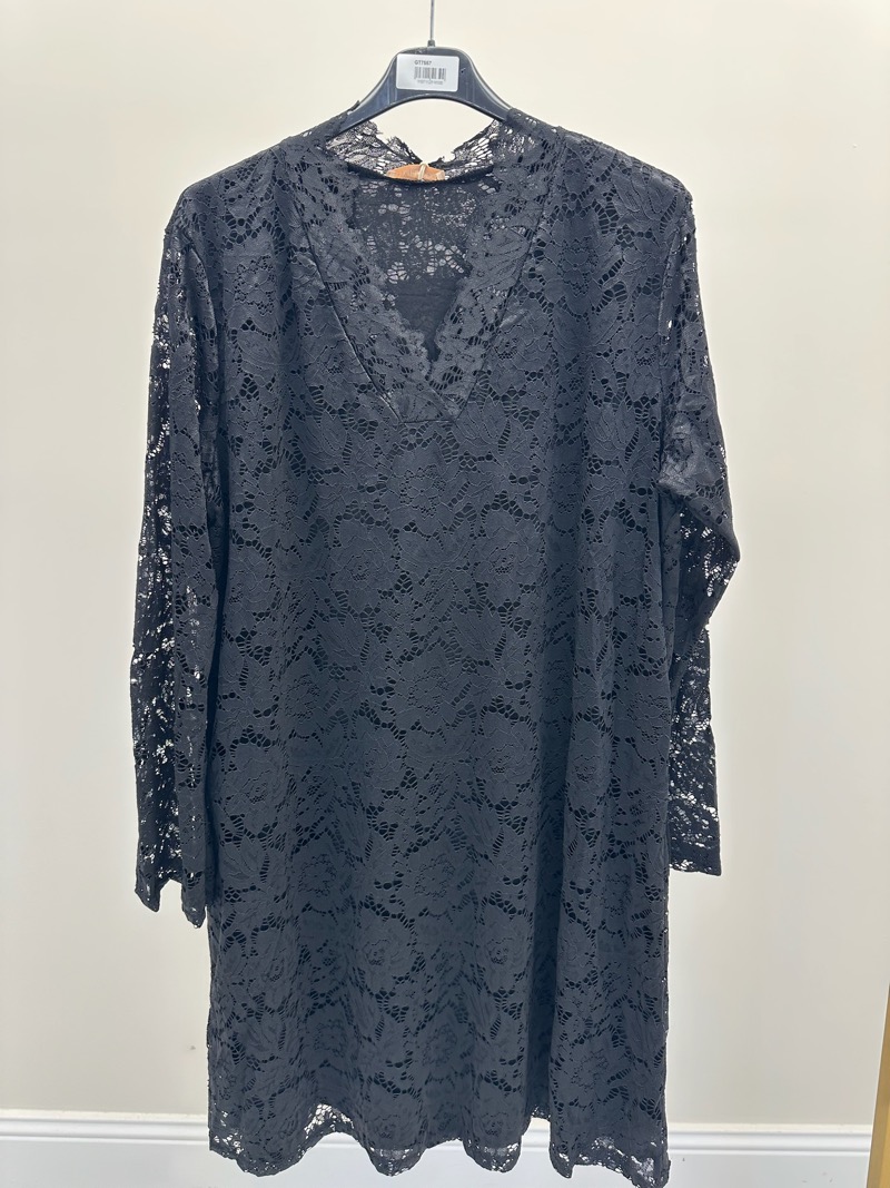 Entièrement recouverte d’une dentelle florale délicate, elle séduit par son décolleté en V féminin et ses manches longues semi-transparentes.